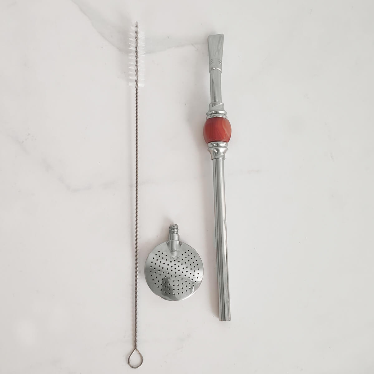 A roda de chimarrão faz parte dos bons momentos com amigos e familiares. A bomba de chimarrão possui bojo redondo de 4cm que pode ser desrosqueado para melhor higienização. Com detalhes em pedra Ágata de Fogo a bomba completará seu chimarrão de forma sofistica. Produzida em aço inox de ótima qualidade esse modelo acompanha escova redonda com cerdas ultrafinas para limpeza interna. Tenha um item especial e de qualidade para matear. Esse acessório para chimarrão é produzido artesanalmente e conta com detalhes diferenciados que dão um toque elegante ao produto.