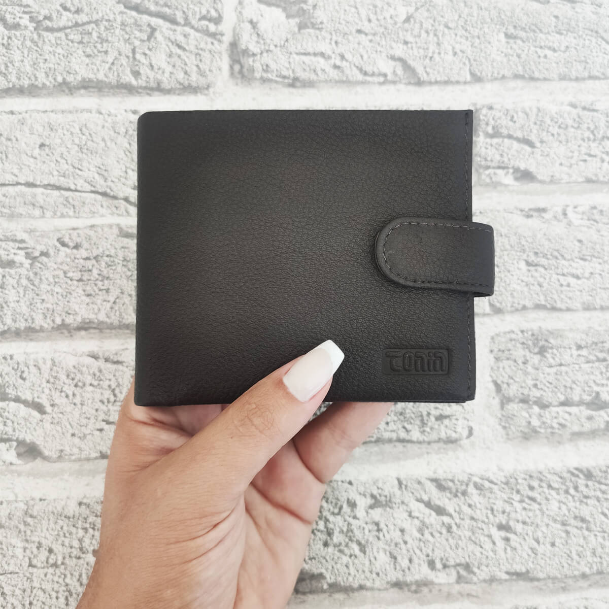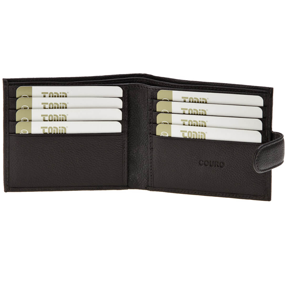 Carteira de Couro Masculina Com Botão e Divisória Porta 8 Cartões Chicago Marrom Tonin