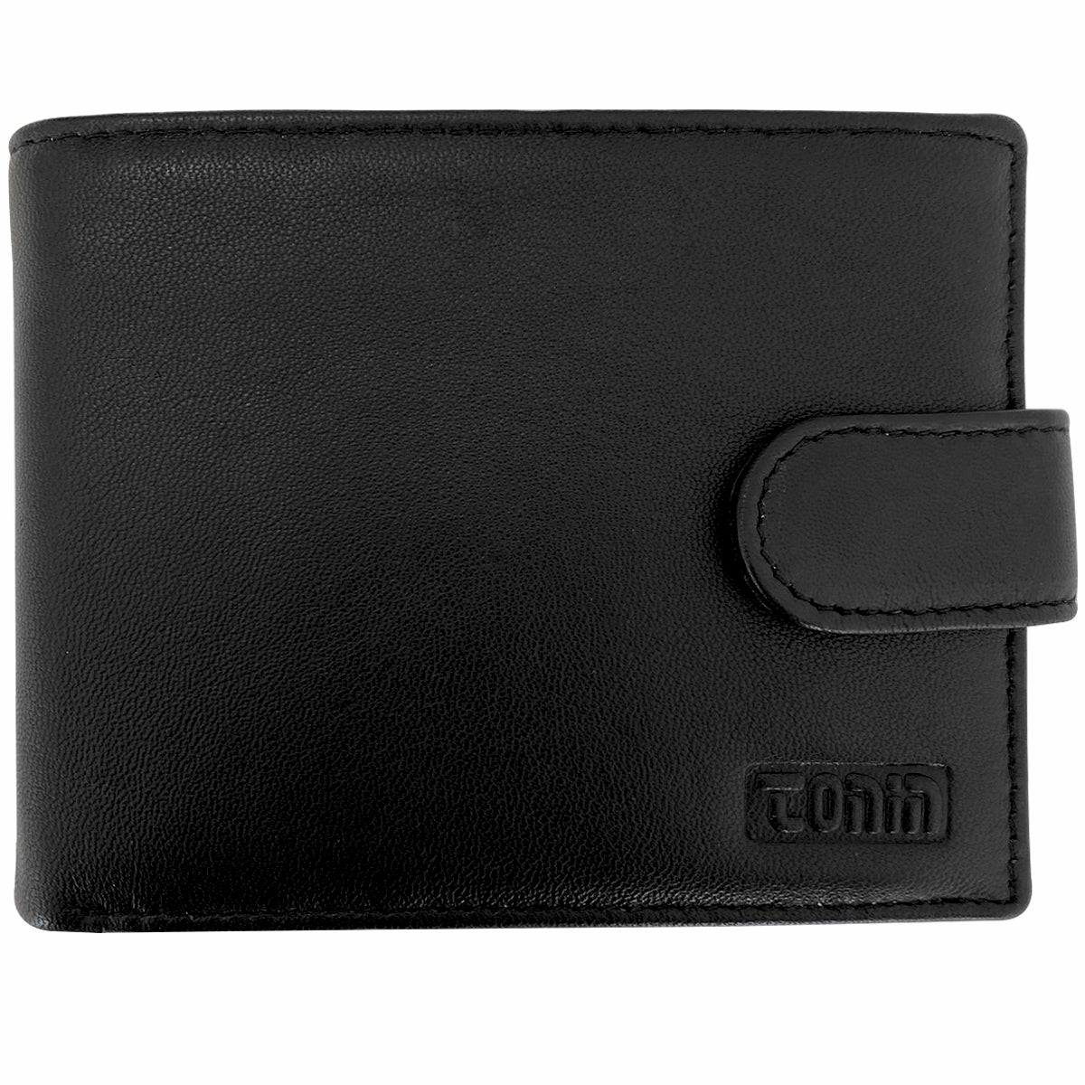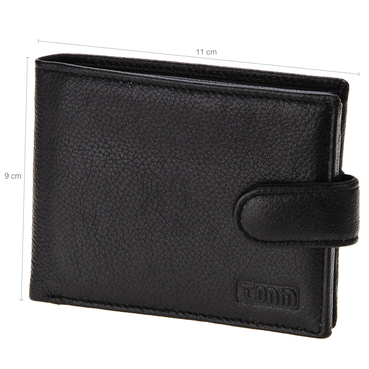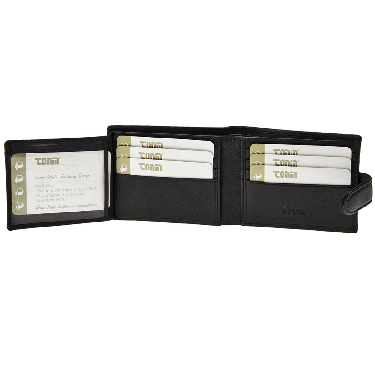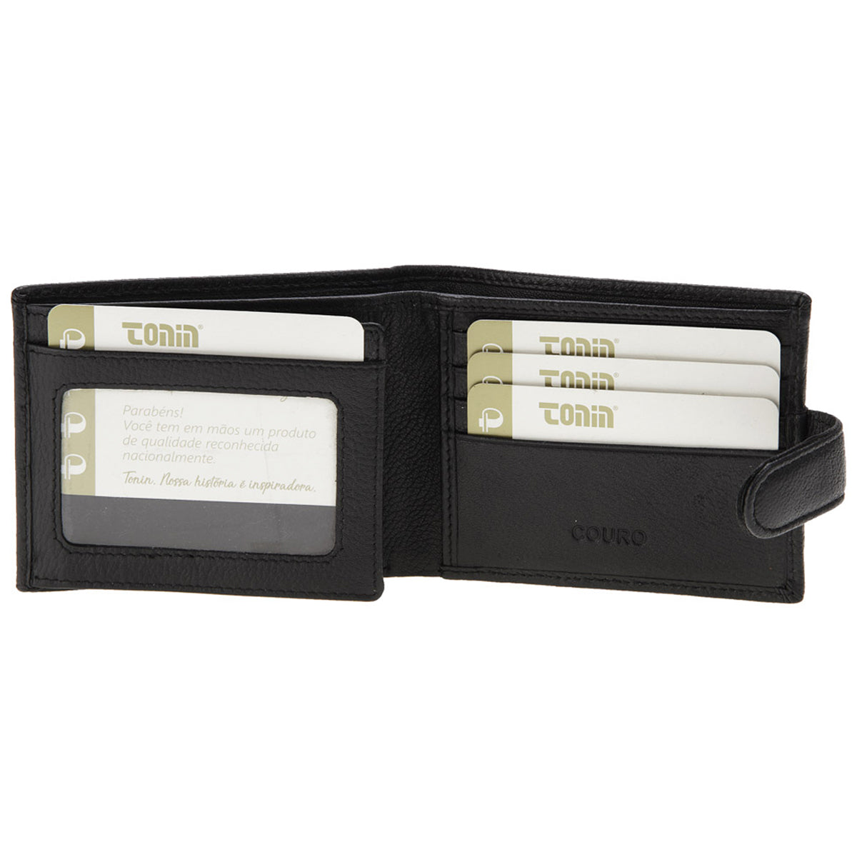 Carteira Masculina De Couro Fechamento Botão Com Porta Cartões Tonin Preto.