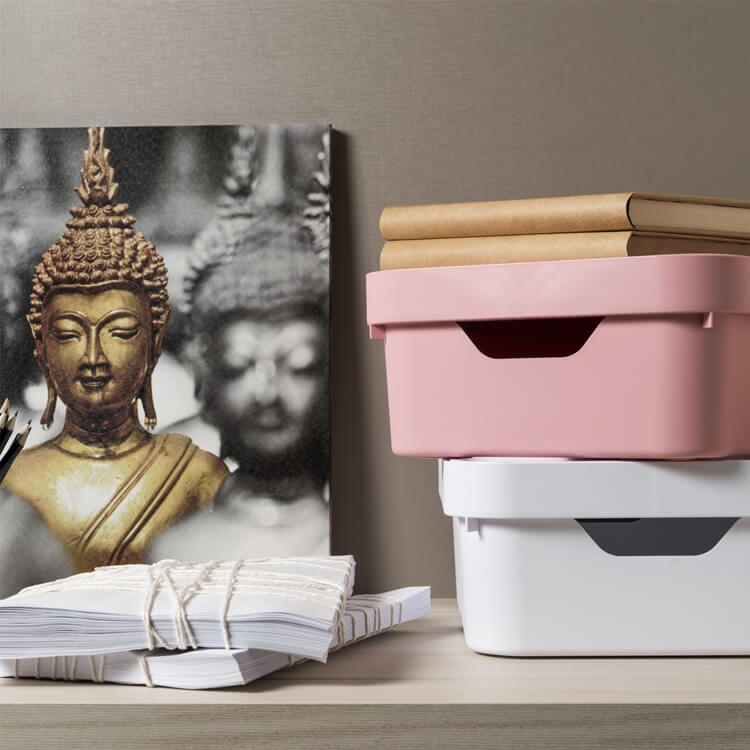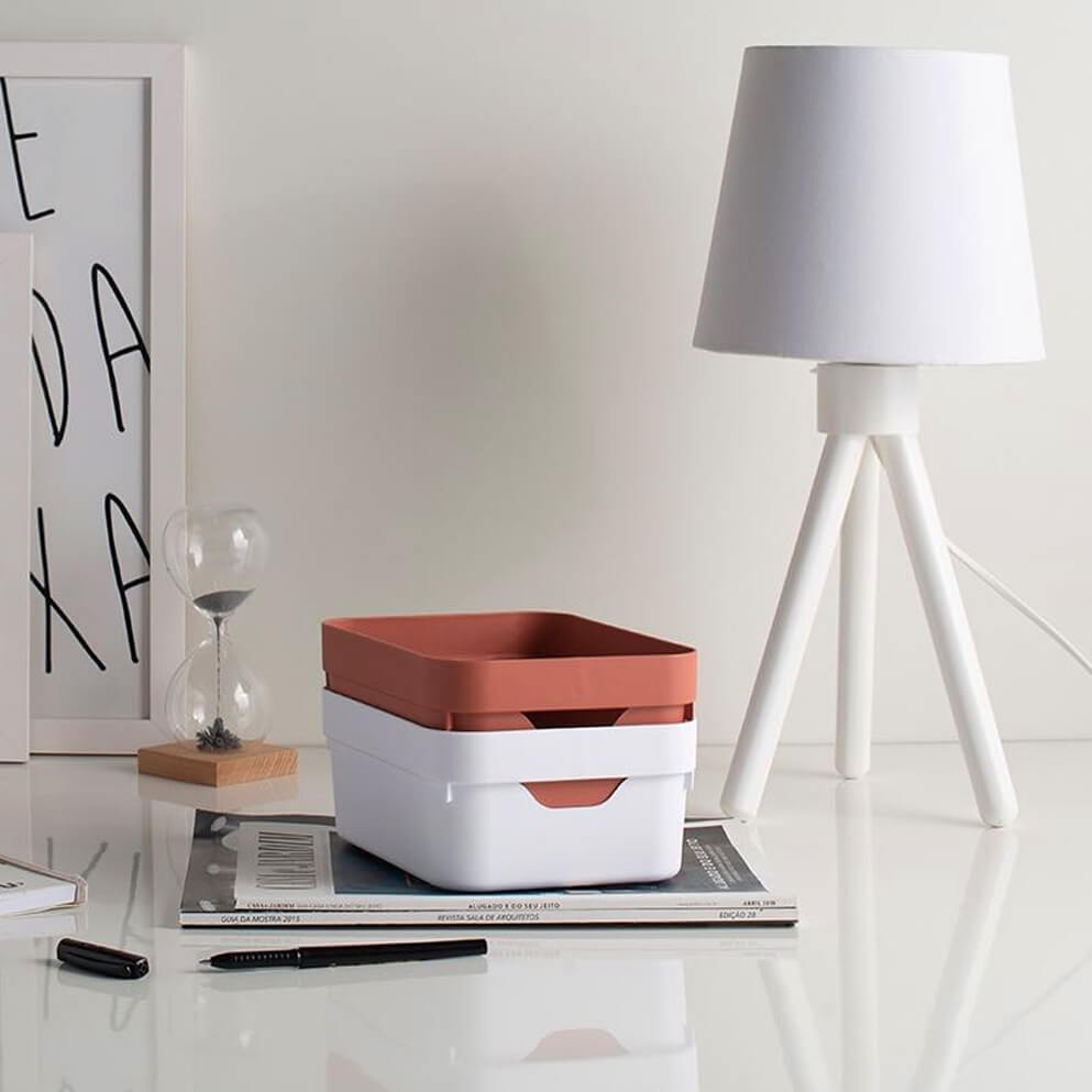Conjunto 8 Caixas Organizadoras Cube Média 10,5L Plástico com Alças Laterais OU Branco
