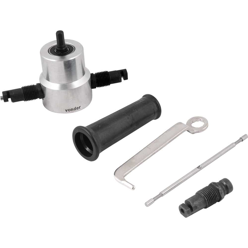 | Local de Uso Indicado | Permite realizar cortes em qualquer direção em materiais como: aço, aço inox, alumínio, cobre, fibra de vidro e plástico. Adaptável em furadeiras elétricas ou pneumáticas. É importante respeitar a rotação mínima e máxima do cortador (1.500/min a 3.000/min) e a capacidade máxima para cada tipo de chapa a ser cortada. Para cortes circulares, o diâmetro mínimo é de 24 mm. |