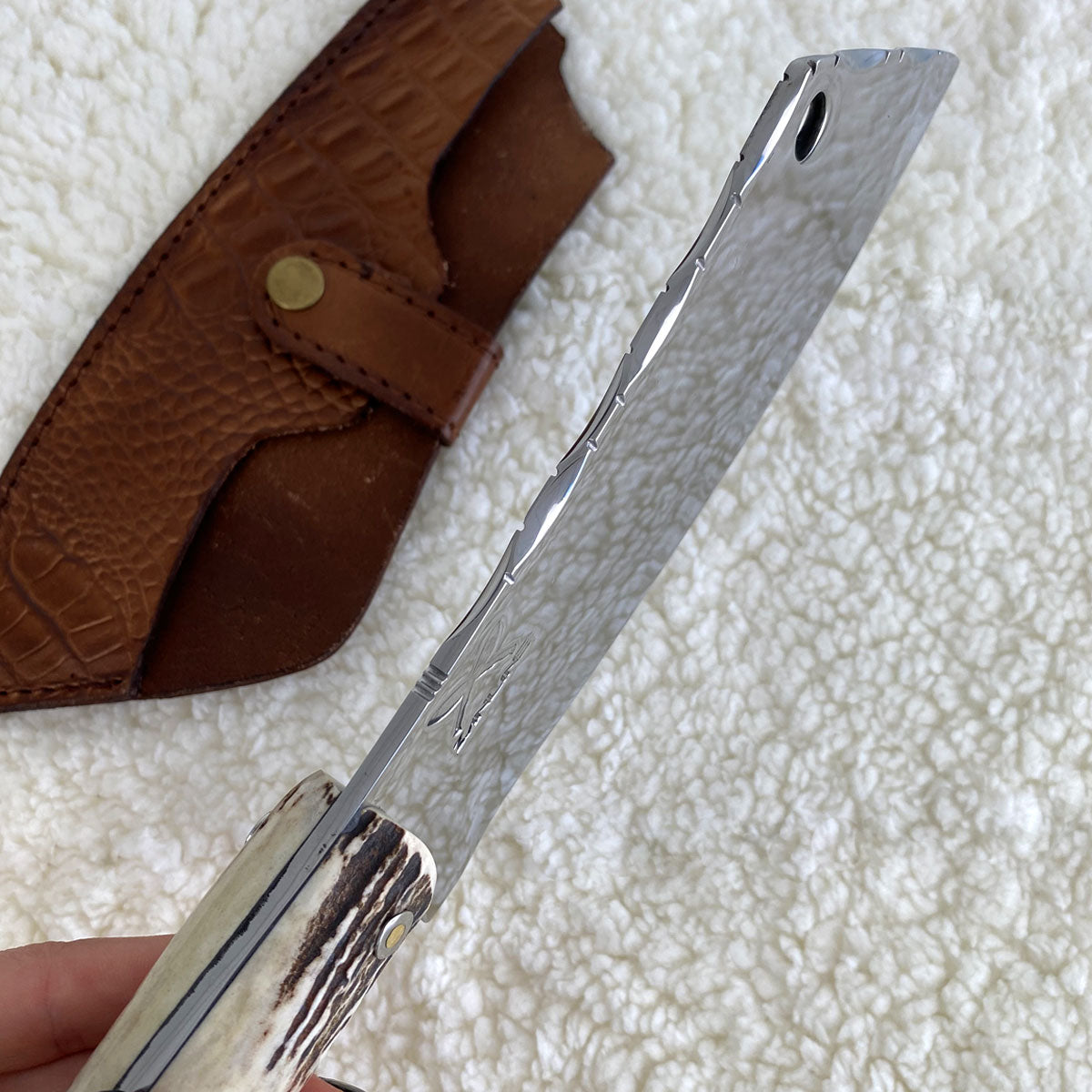 | Materiais | Couro, Osso, Aço Inox 420C, Chifre de Cervo |