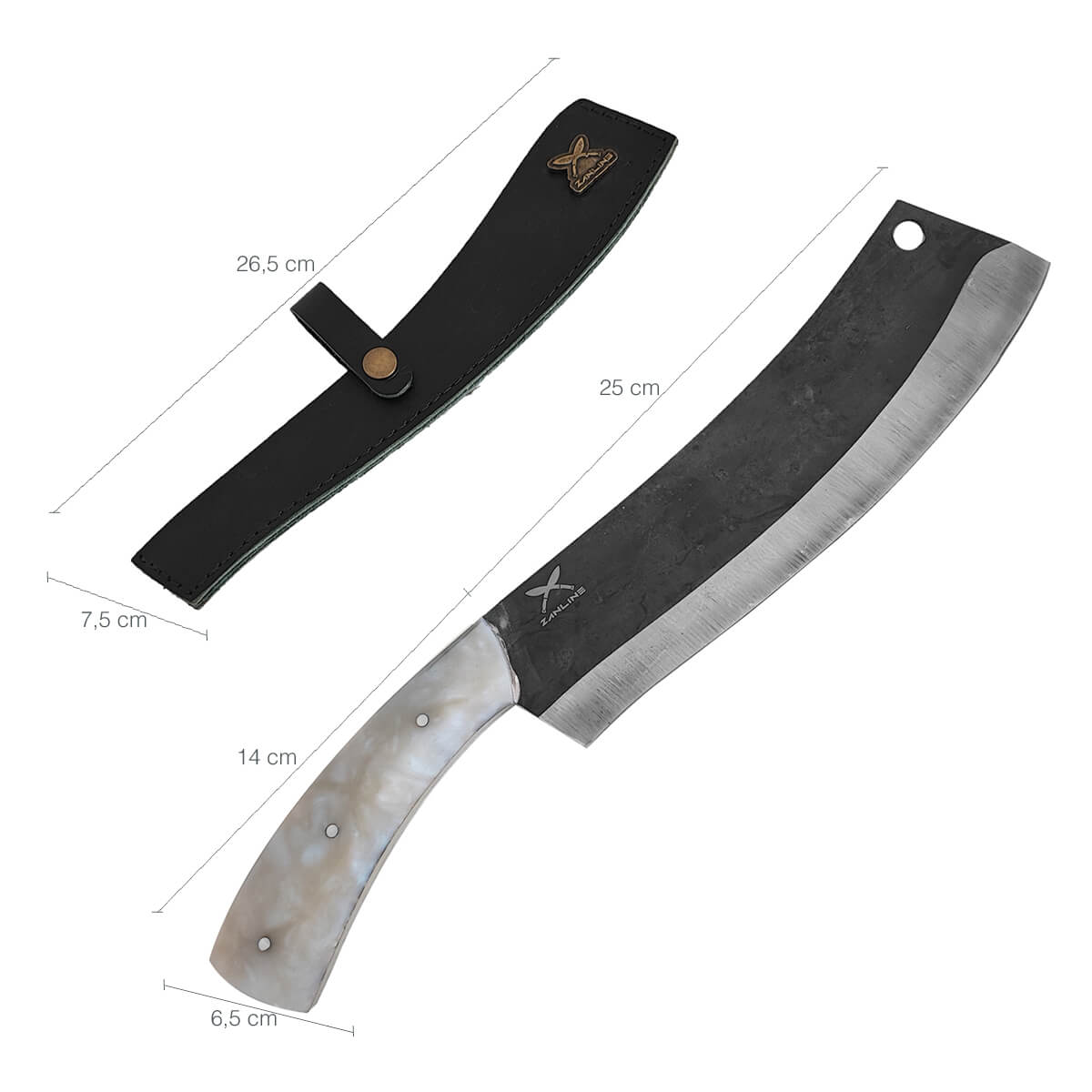 | Materiais | Couro, Aço Carbono 1070, Resina |