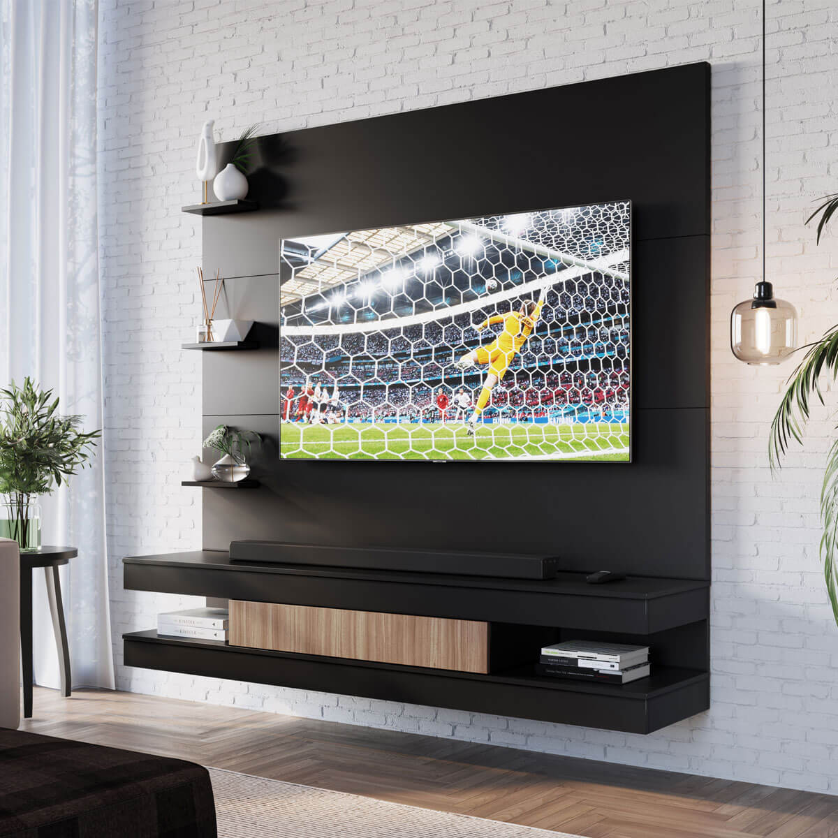 O painel preto com detalhe marrom PL170 da Prodecor móveis, é indicado para TV de até 65 polegadas, garantindo o melhor do entretenimento para você e sua família. Produzido em uma excelente estrutura 100% em MDP 15mm.