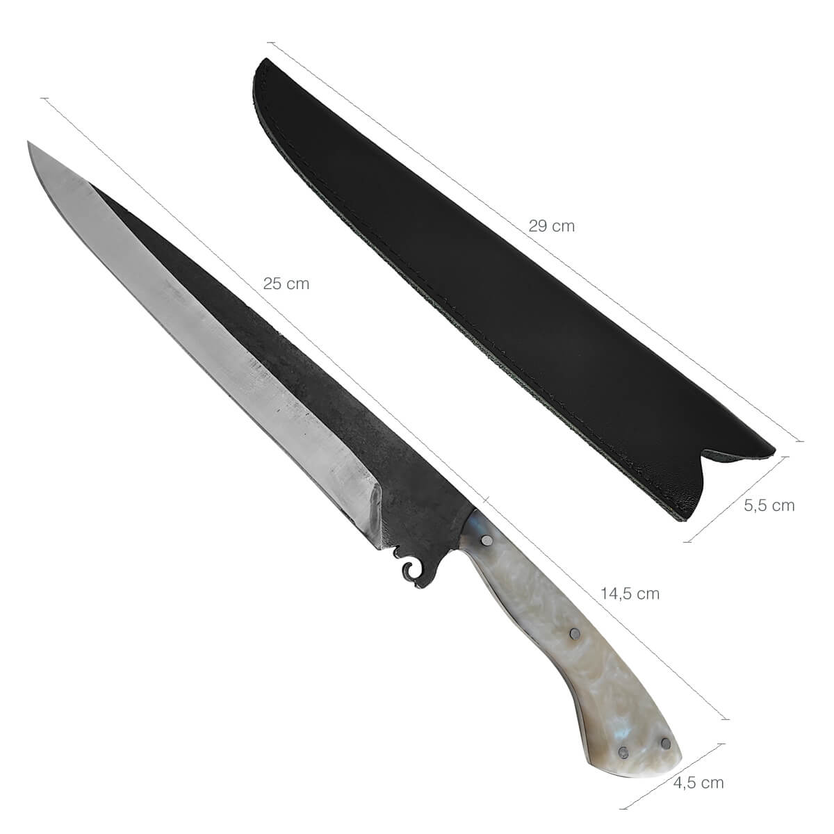 | Materiais | Couro, Aço Carbono 1070, Resina |