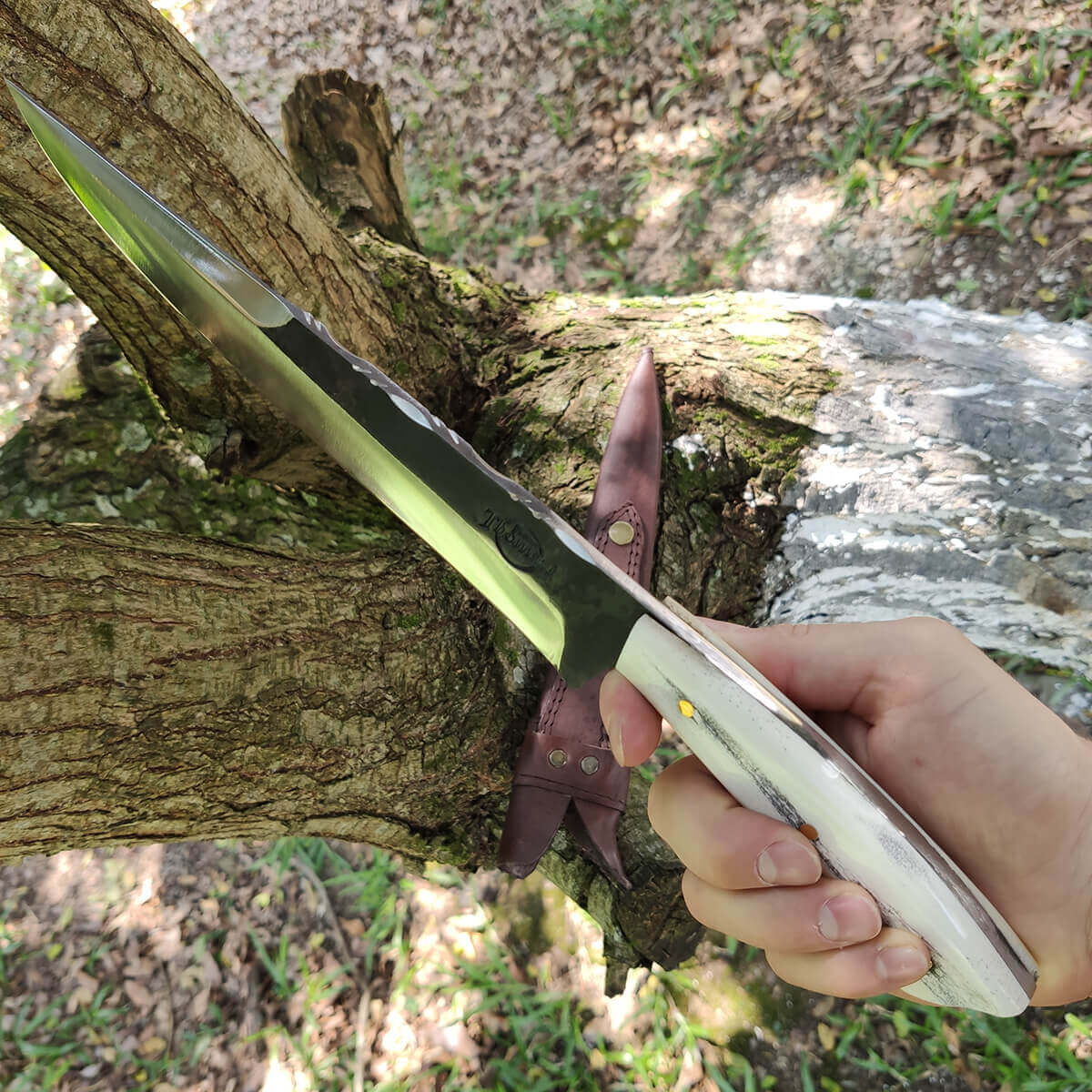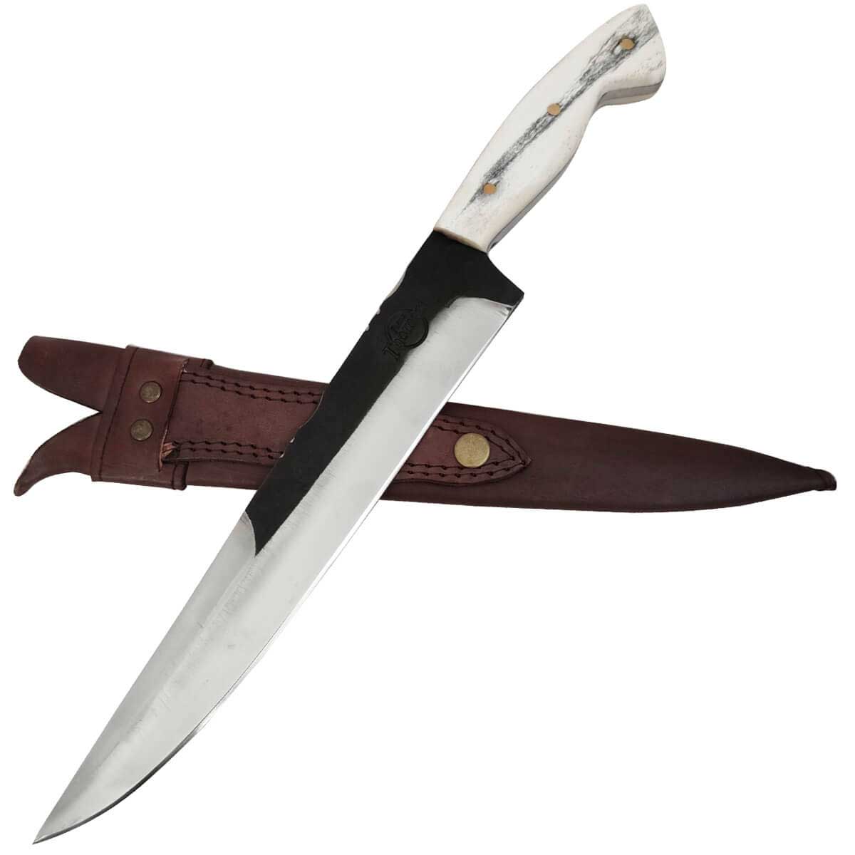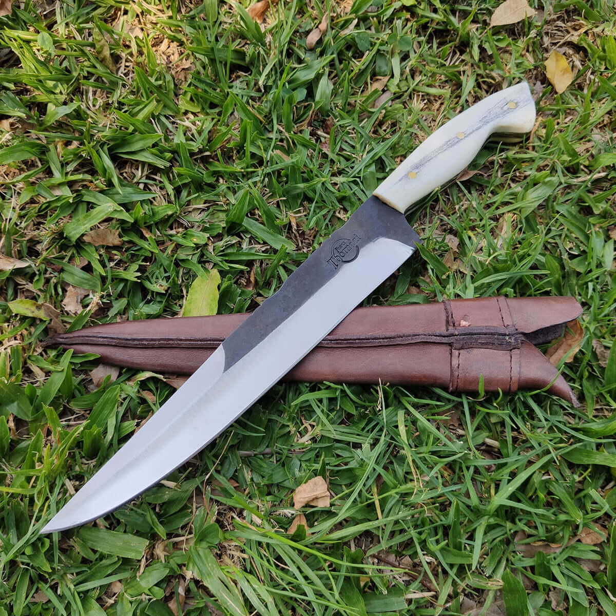 Faca Artesanal Churrasco Aço Cirúrgico Inox 420c Fulltang 10' Thomazi Brut Forge Cabo de Osso