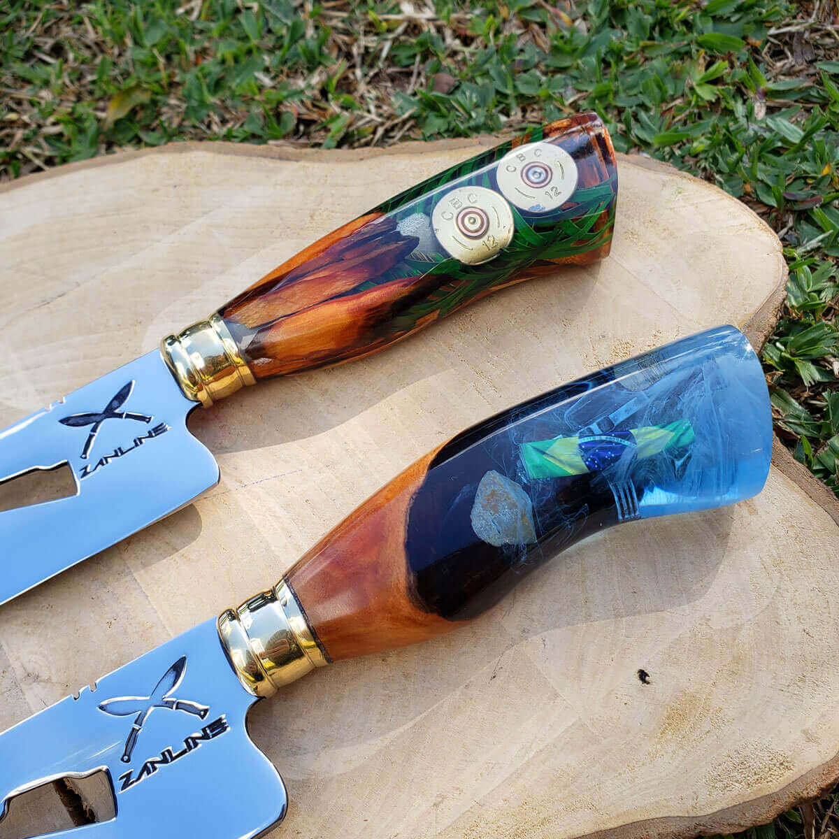 Faca Artesanal para Churrasco 10” Aço Inox 420c Cabo Híbrido com Adornos Sniper Zanline.