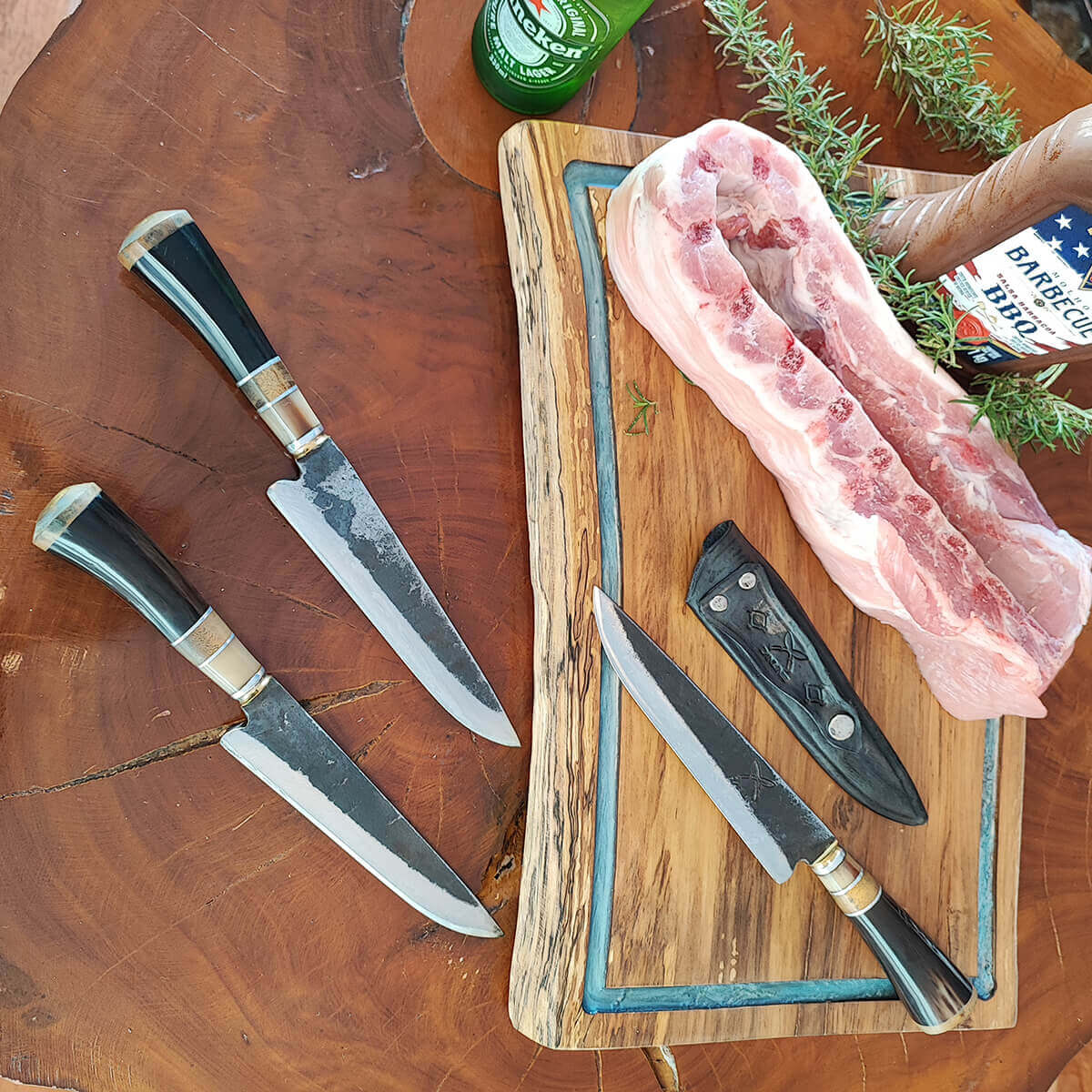 | Materiais | Couro, Chifre, Aço Carbono 1070, Madeira Natural |