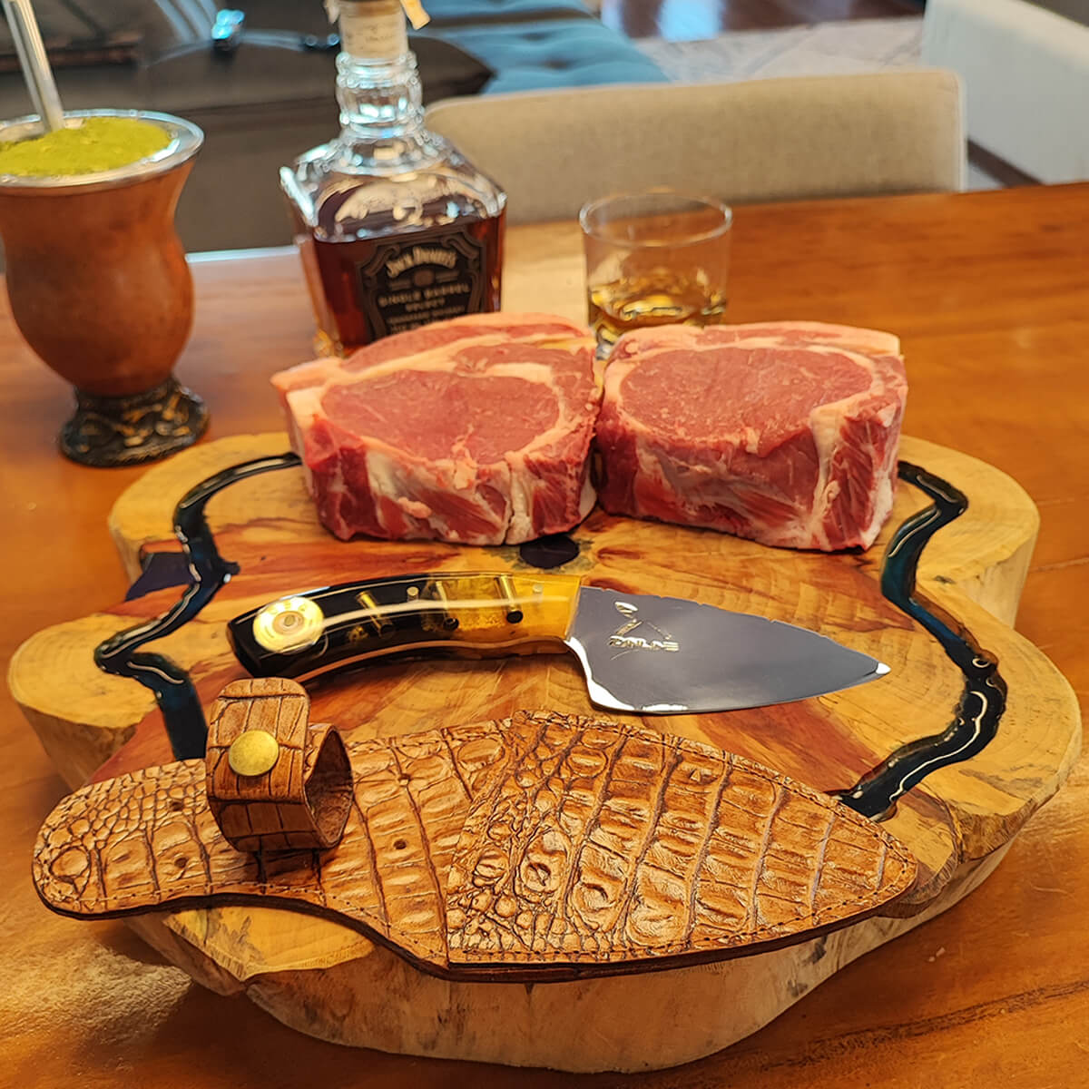 | Materiais | Couro, Resina, Metal, Aço Inox 420C |
