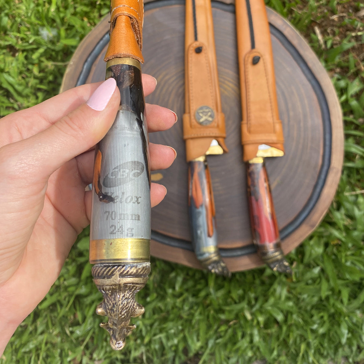 | Cabo | Madeira nobre, resina e zamak |