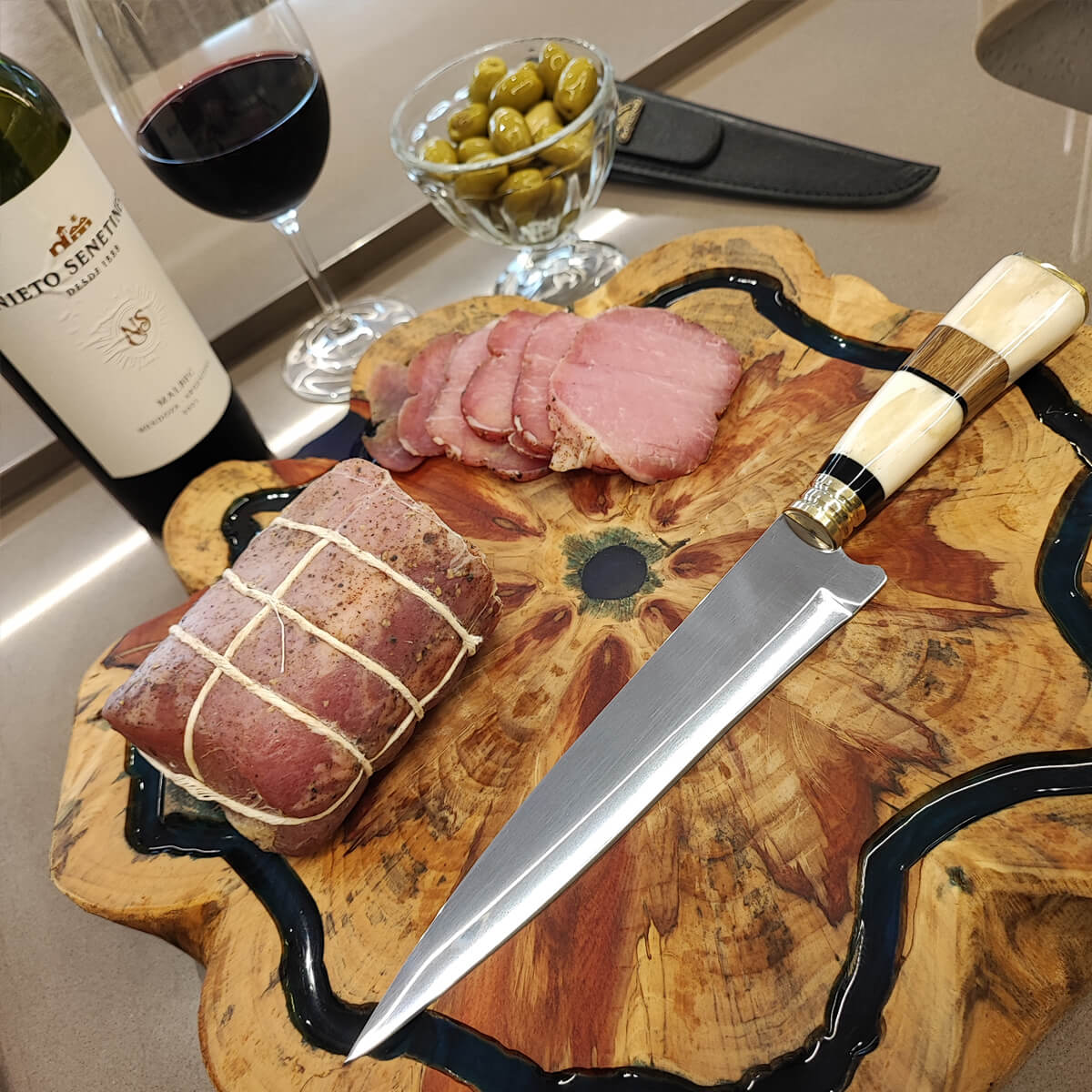 | Materiais | Couro, Osso, Aço Inox 420, Resina |