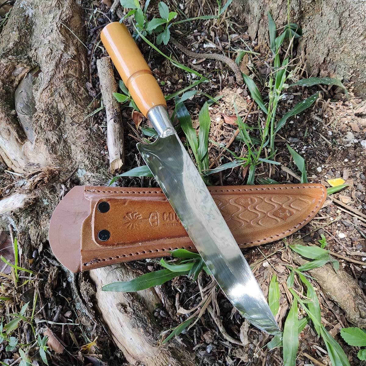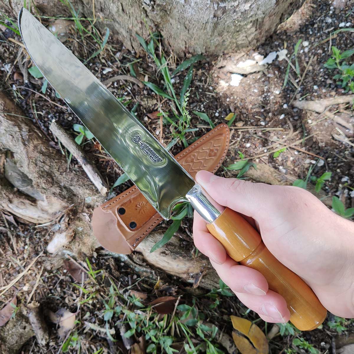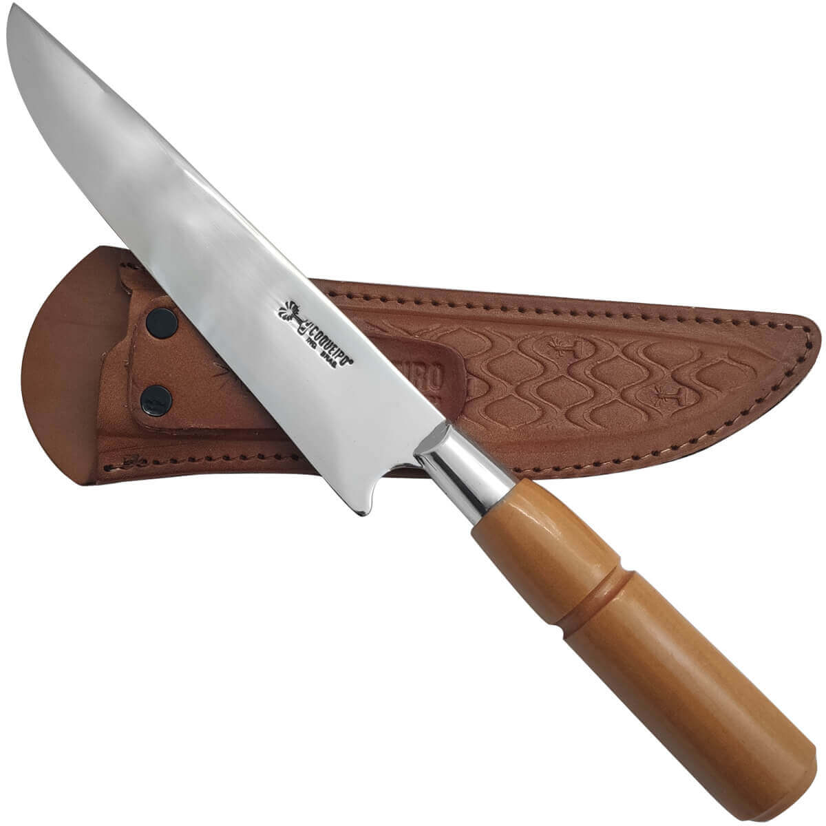 | Materiais | Aço Inox 420, Latão Cromado, Madeira nobre e Couro. |