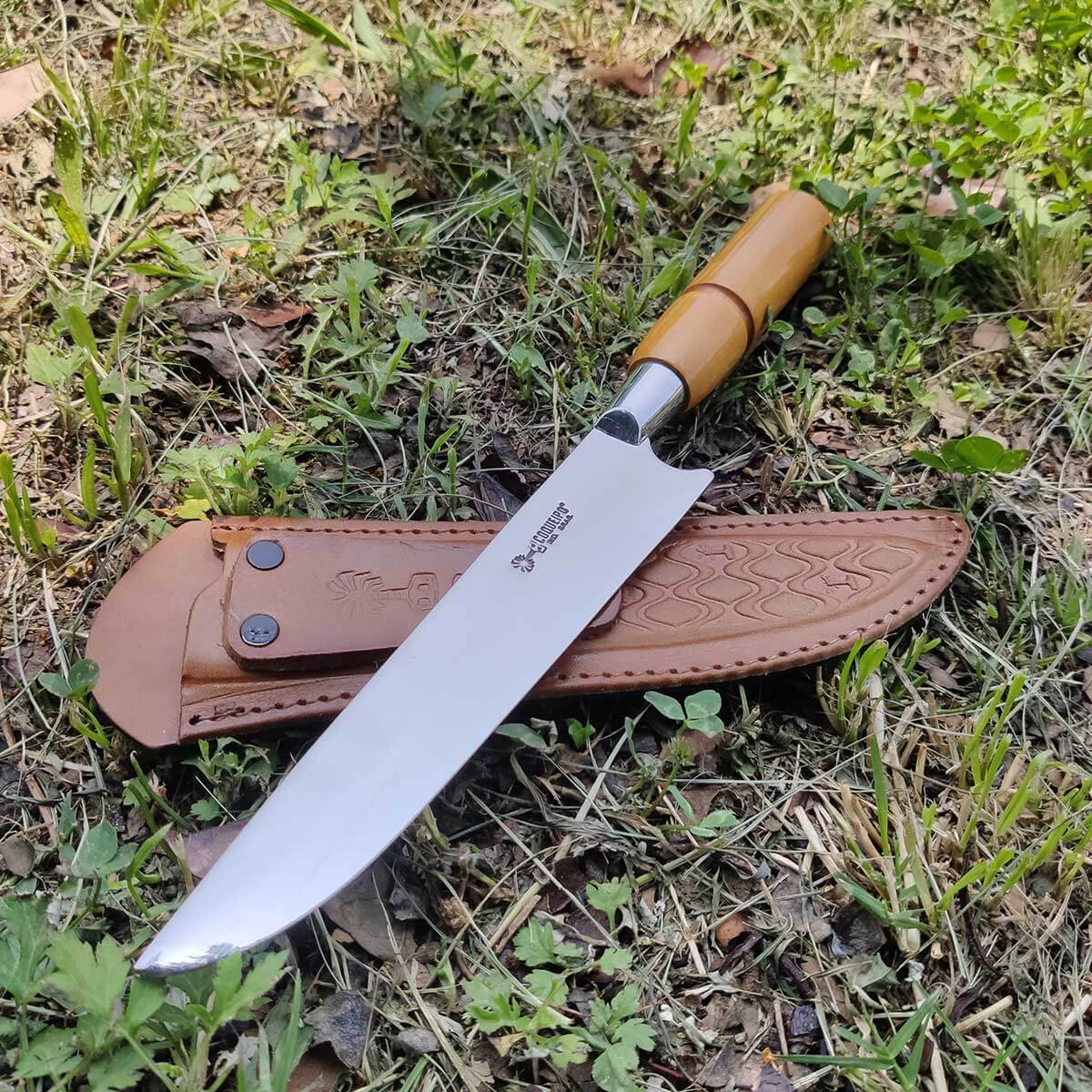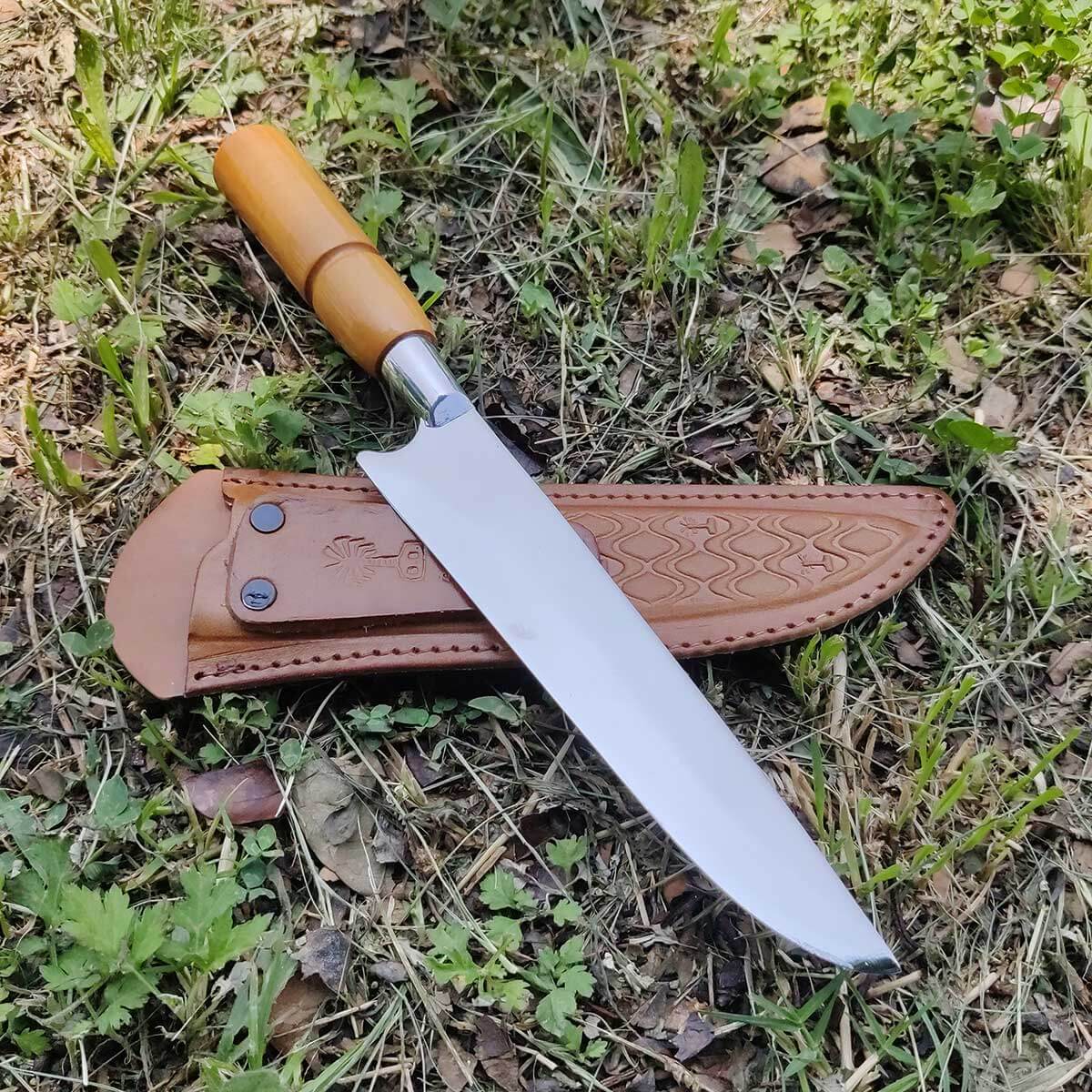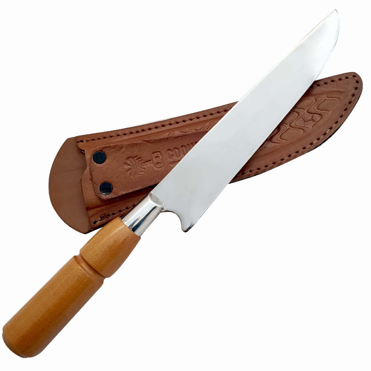 | Materiais | Aço Inox 420, Latão Cromado, Madeira nobre e Couro. |