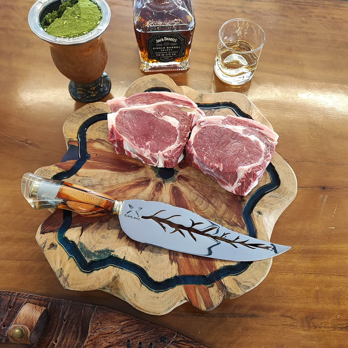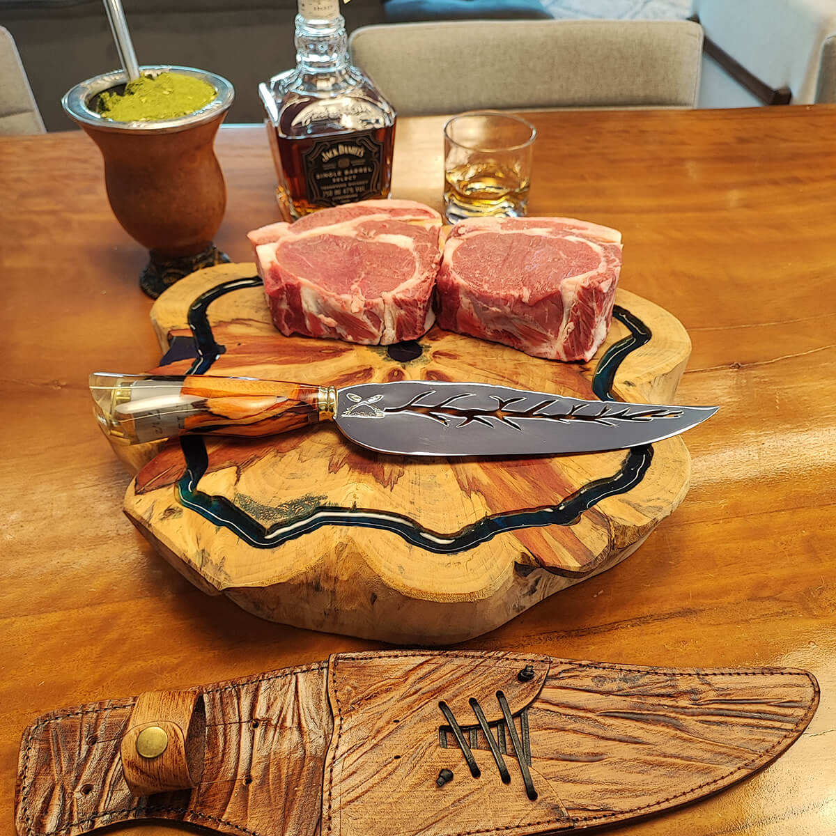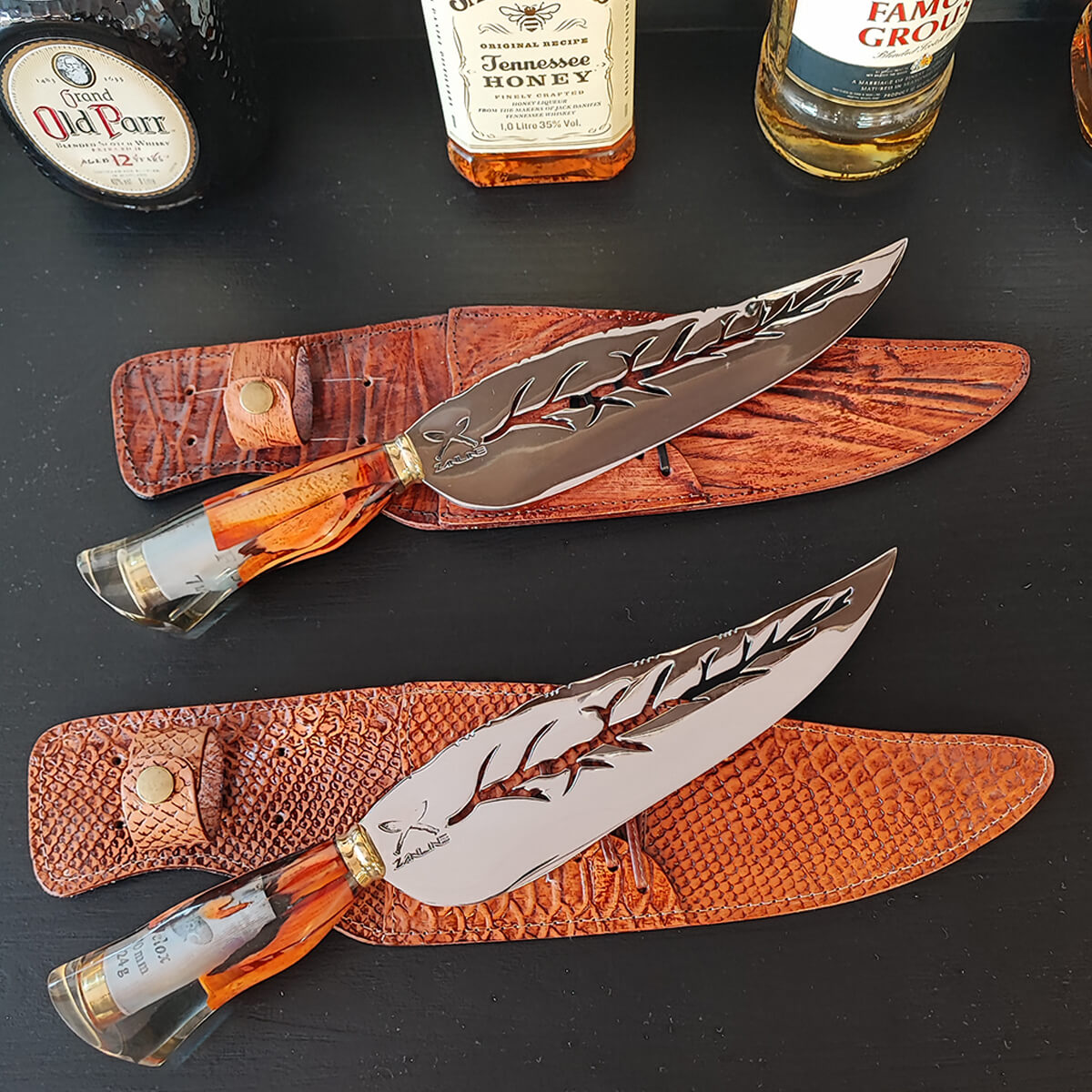 | Materiais | Couro, Resina, Madeira Nobre, Metal, Aço Inox 420C |