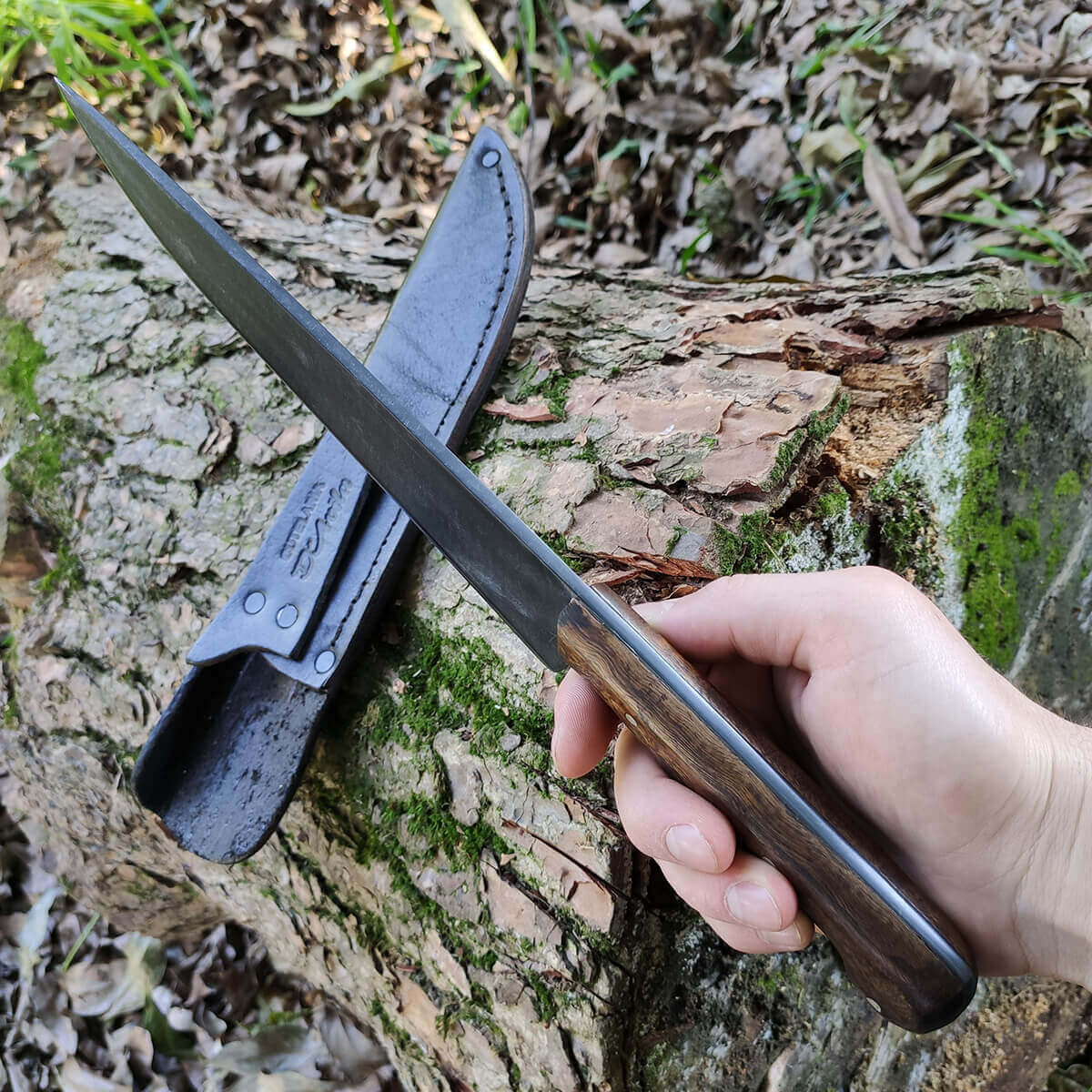 - Aço Carbono 5160 Fosfatizado: A lâmina é temperada a óleo em um processo bem artesanal. Possui grande resistência e mantém o fio por muito tempo. Por ser fosfatizada a lâmina possui uma resistência maior contra a ferrugem do que o aço carbono comum.