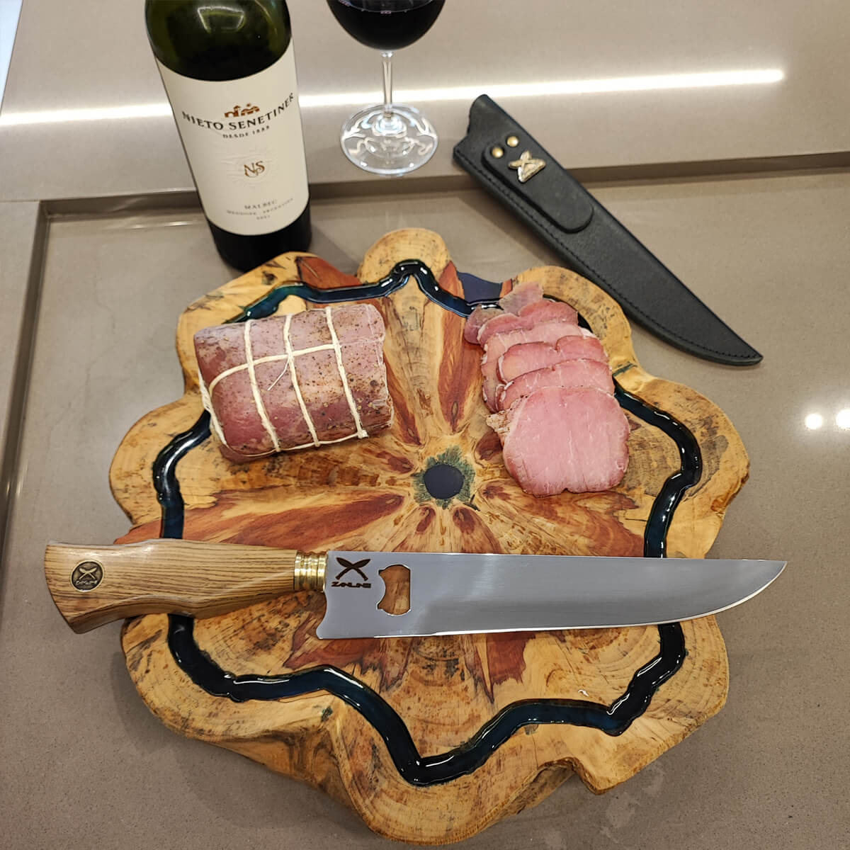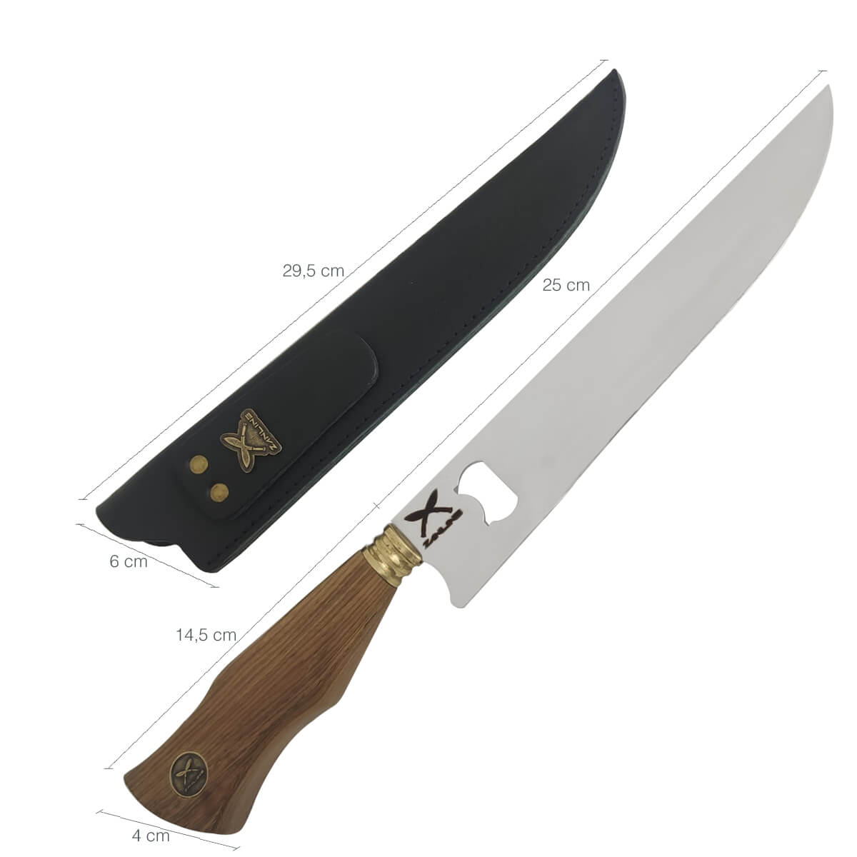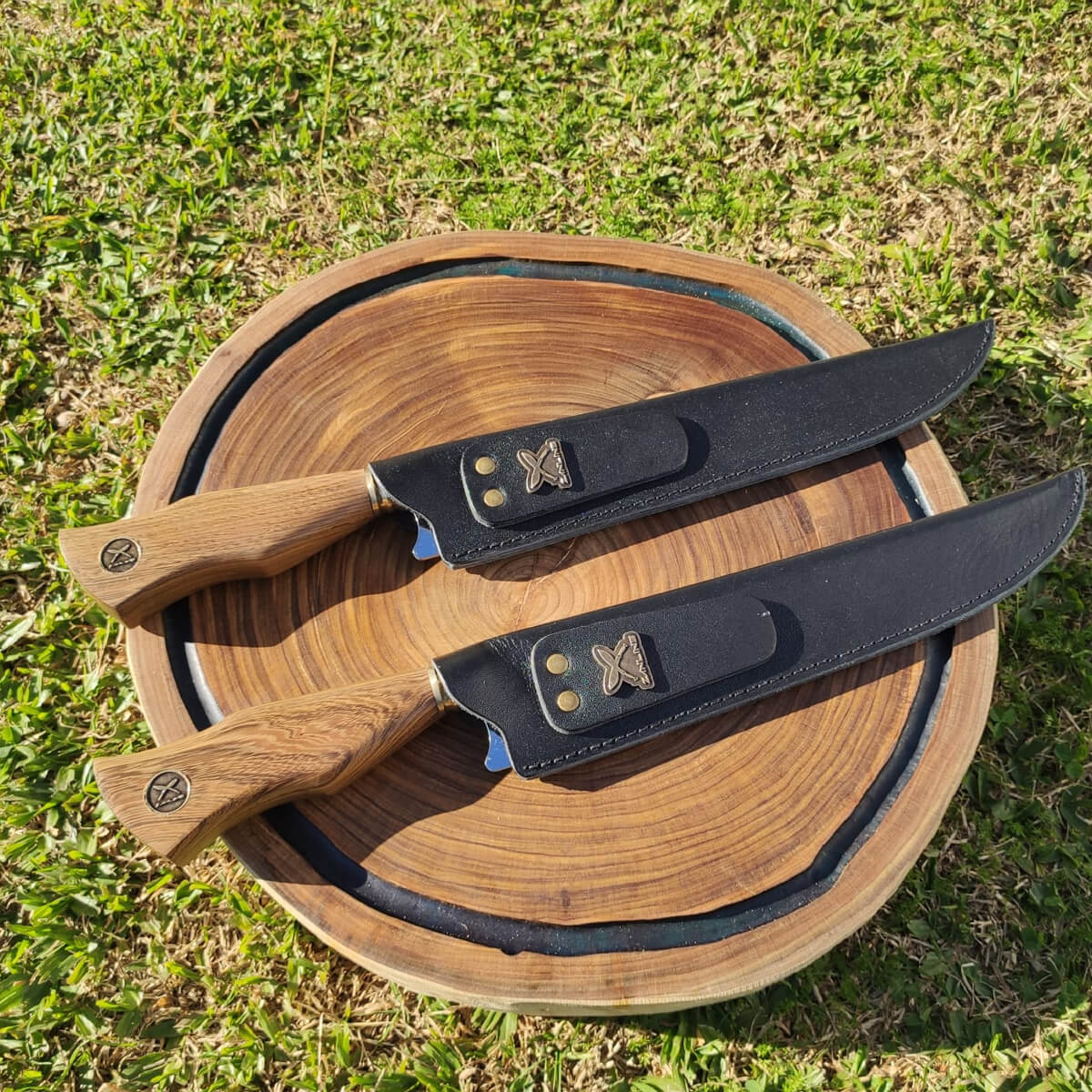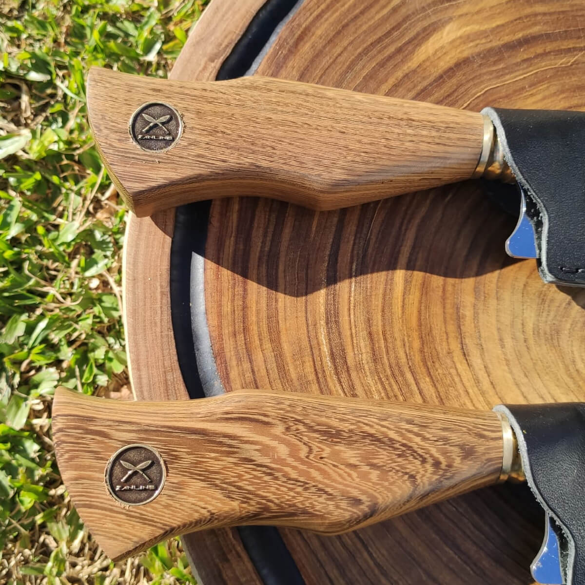 | Materiais | Couro, Madeira, Aço Inox 420, Latão Cromado |