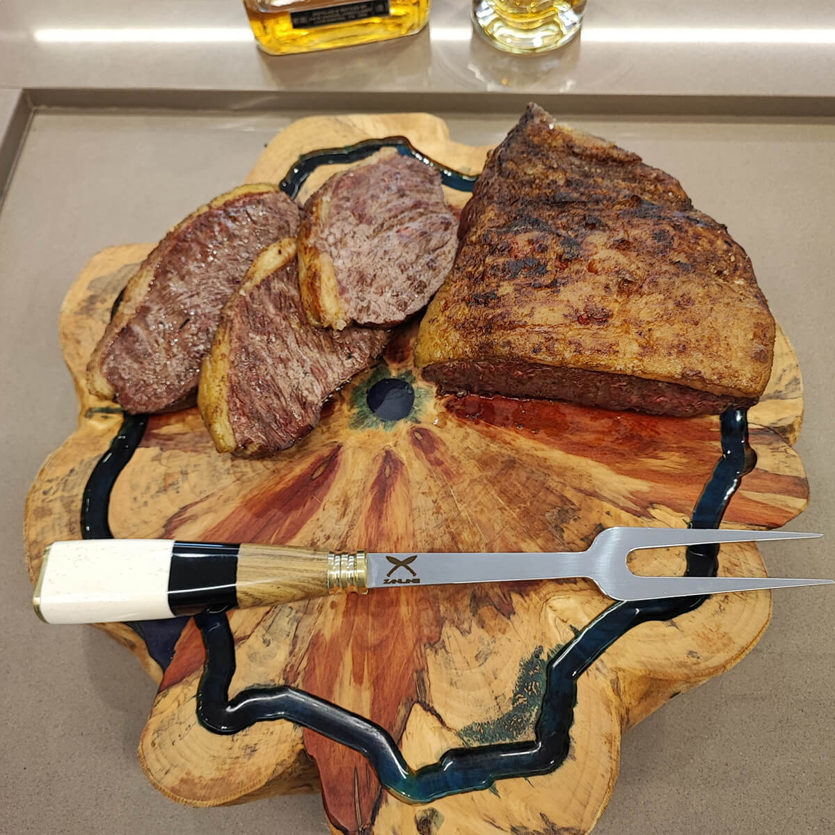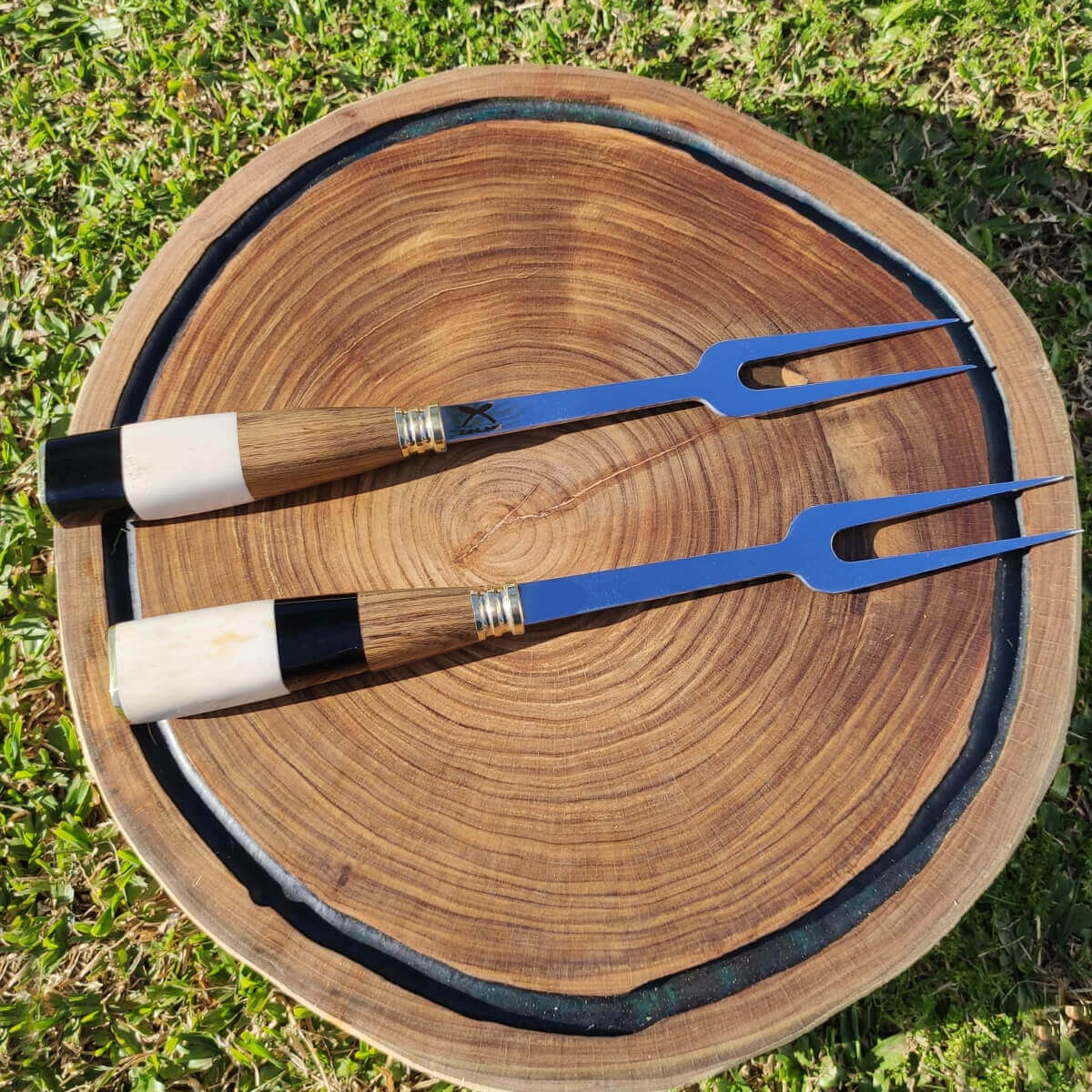 Garfo Trinchante para Churrasco Aço Inox 8' Cabo Madeira Nobre Osso Bovino e Resina Garfo para Cortar Carne Zanline.