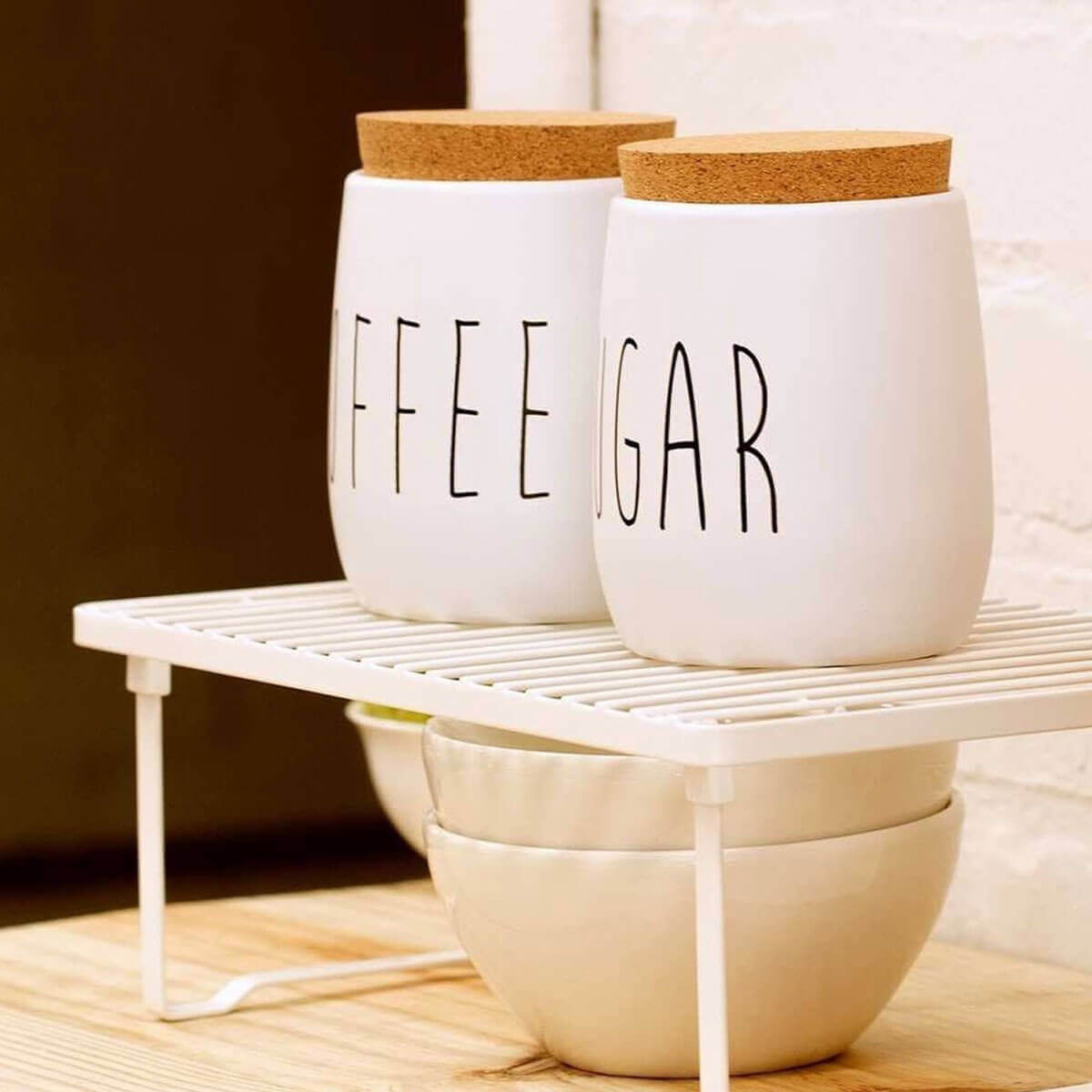 Kit 2 Latas Porta Condimentos Sugar e Coffee 850ml Potes para Açúcar e Café em Metal OAK Yoi Branco.