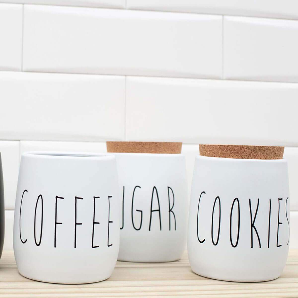 A linha OAK da Yoi veio trazer sofisticação e organização para dentro da sua casa, no mais fiel estilo escandinavo essas peças contam com detalhes minimalistas caracterizados por linhas retas e cores neutras. Disponíveis na cor branca com as escritas "Sugar" e "Coffee" na cor preta indicando o conteúdo armazenado em seu interior, estas latas porta condimentos são confeccionadas em metal com tampa de cortiça (tipo rolha) e vedação de encaixe, ideais para manter o açúcar e o café sempre secos e soltinhos por muito mais tempo. Este conjunto de latas vai deixar sua cozinha ainda mais linda e super clean, combinando perfeitamente com seu ambiente.