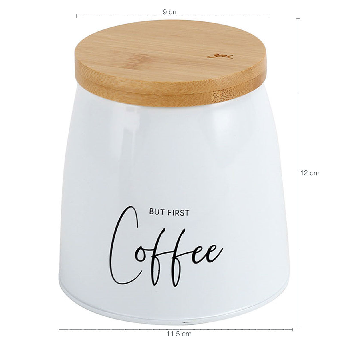 Kit 3 Latas Coffee Sugar e Cookies Sunshine Yoi Potes para Biscoitos Açúcar e Café em Aço e Bambu Brancos.