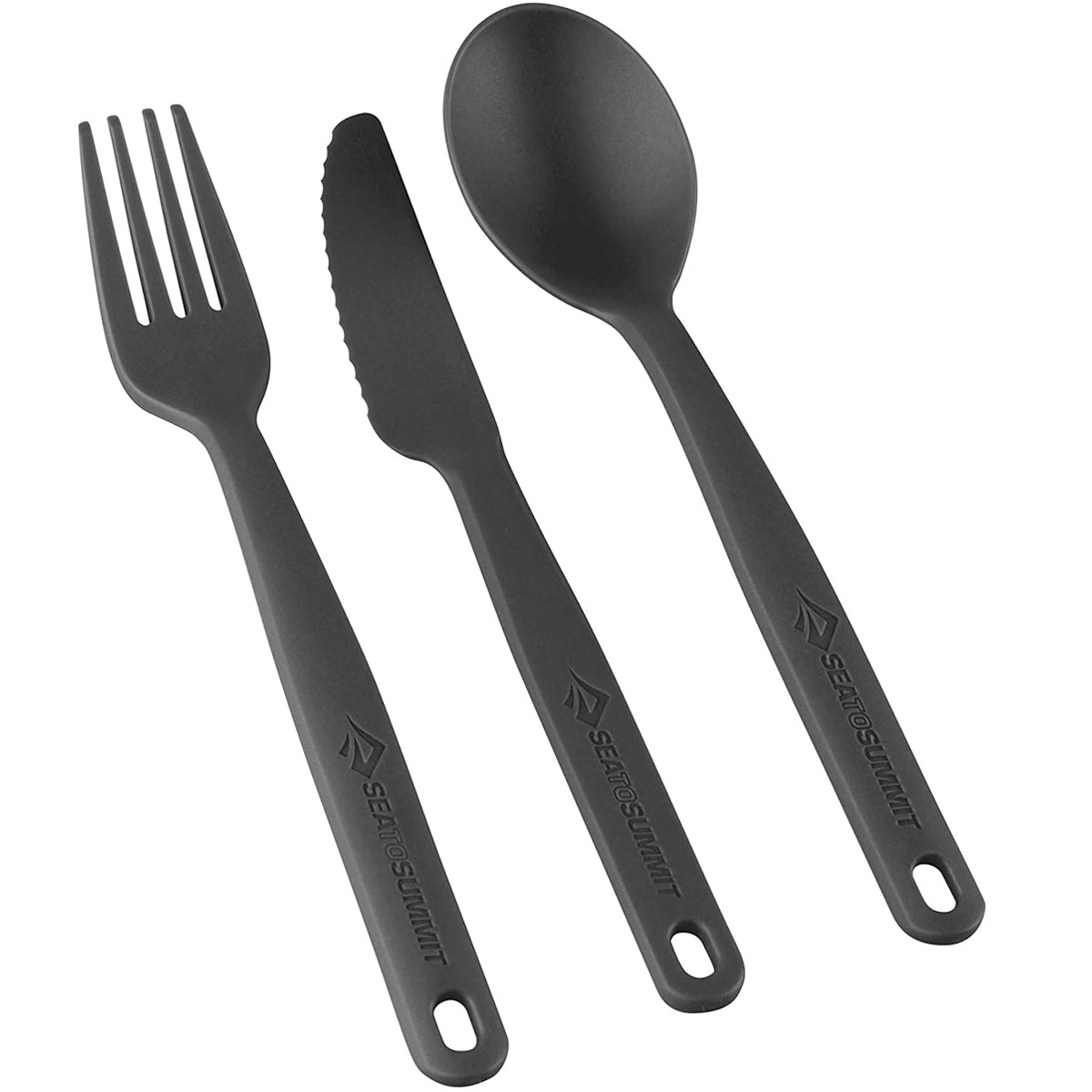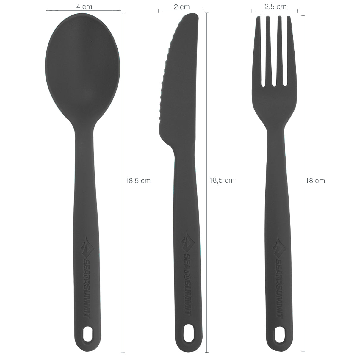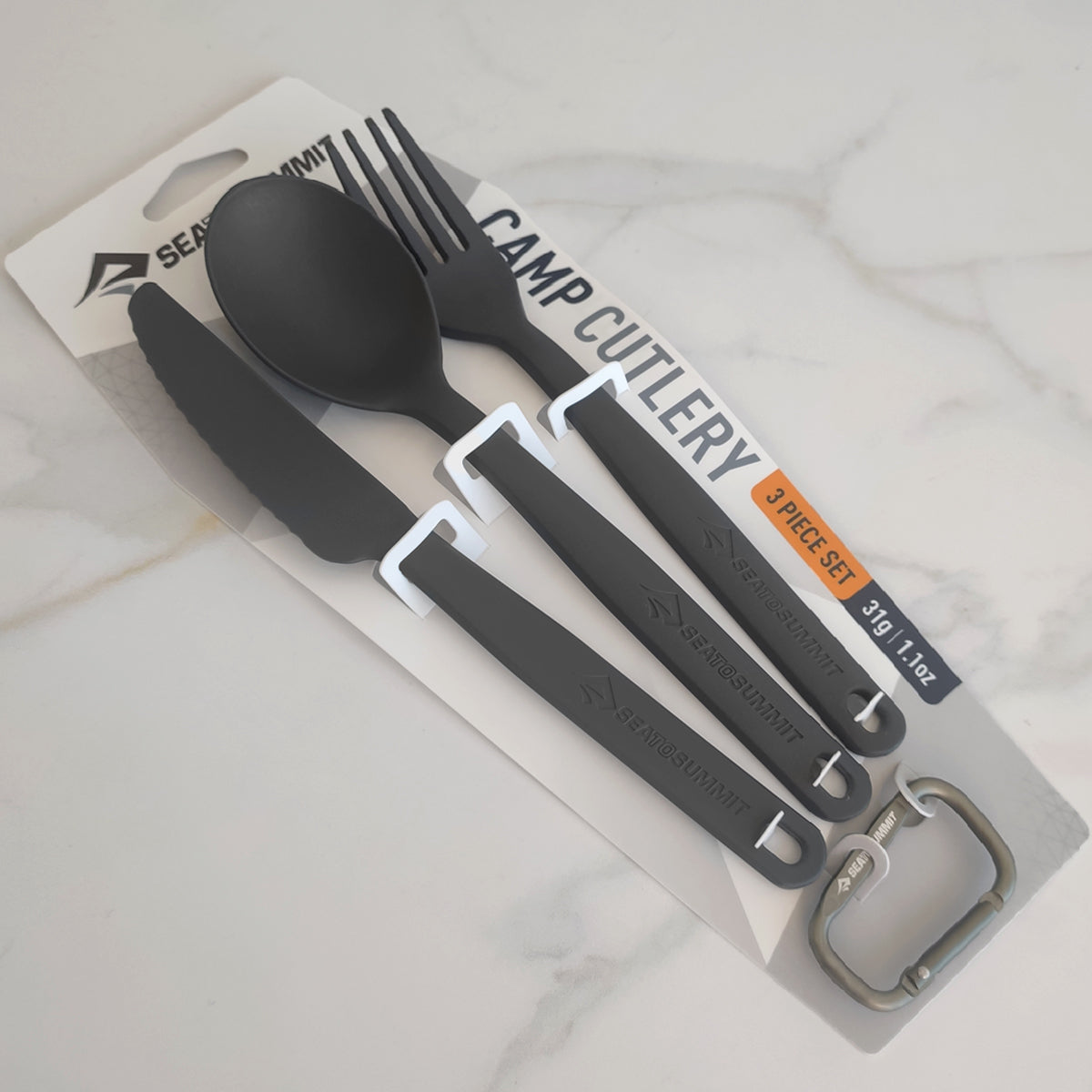 O conjunto de talheres para camping da Sea to Summit é ideal para quem gosta de acampar, seja em montanhas, praias ou em campings e levar pouco peso. É super leve e prático, confeccionado em policarbonato de grau alimentar, seu material além de ser livre de BPA, não oferecer risco ao consumidor e também é resistente. Além disso, o kit de talheres acompanha um pequeno mosquetão que, além de unir os talheres, serve também para pendurar os mesmos na mochila ou na barraca, evitando que se percam em meio aos equipamentos.