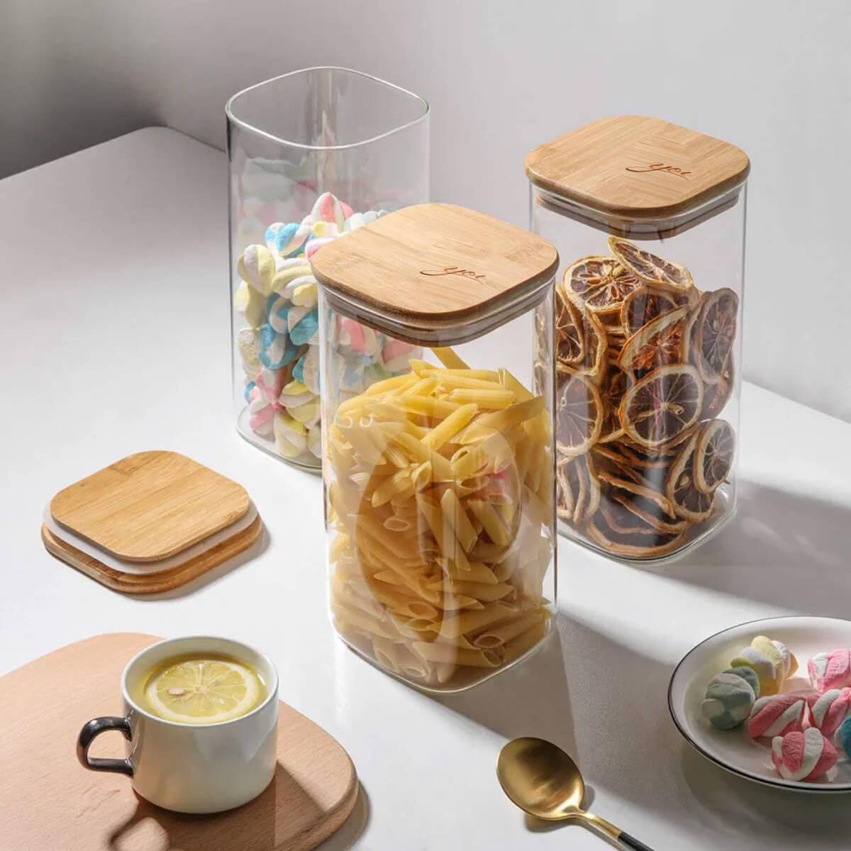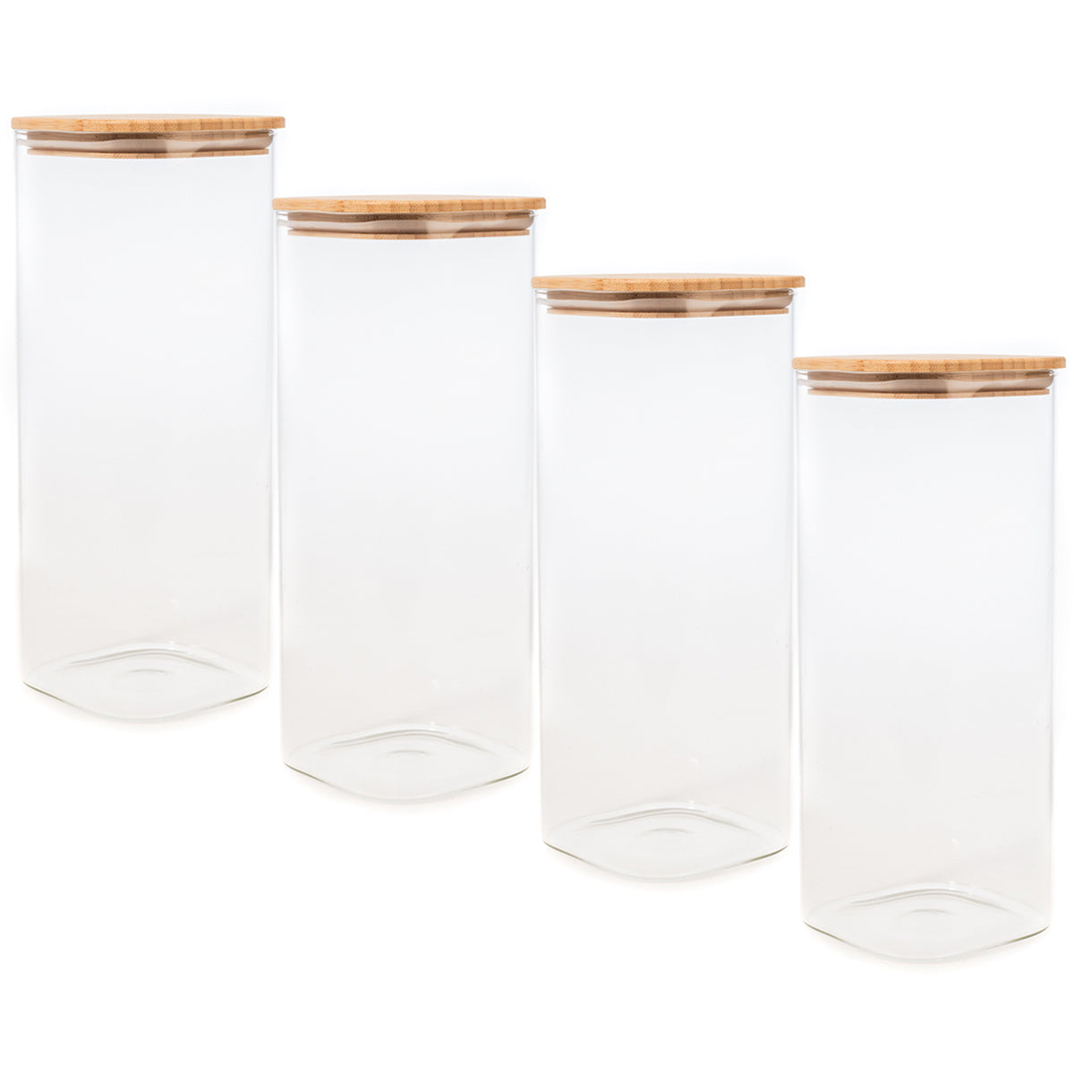Kit 4 Potes De Vidro Herméticos Com Tampas Em Bambu 1635ml Porta Mantimentos Grandes Cozinha Yoi.