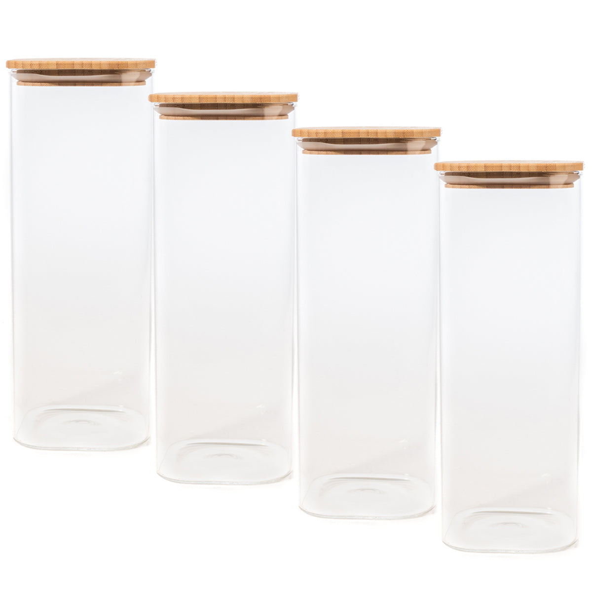 Kit 4 Potes De Vidro Herméticos Com Tampas Em Bambu 2050ml Porta Mantimentos Extra Grandes Cozinha Yoi.