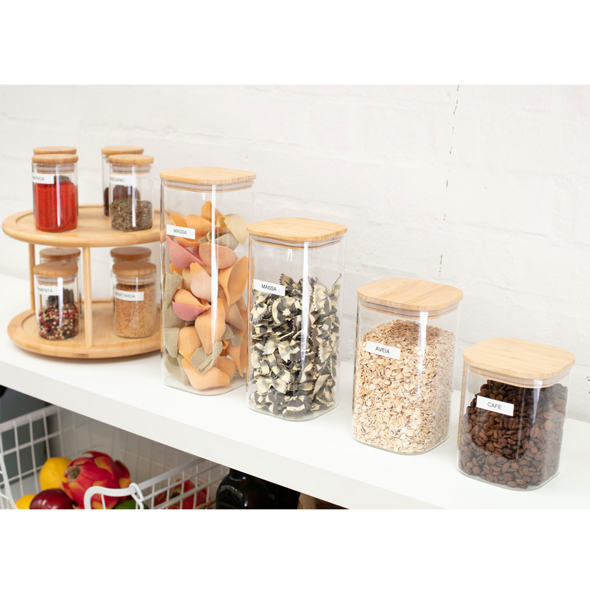 Aposte no visual delicado deste conjunto de quatro potes herméticos 2050ml da linha Vika Yoi para manter tudo muito bem conservado. Com fechamento hermético, os potes porta mantimentos possuem tampas em bambu que além de conferir beleza natural às peças, dispõem de alta vedação em silicone. Já suas estruturas em vidro borossilicato incolor permitem que você visualize os seus conteúdos, sem precisar manipulá-los para isso.