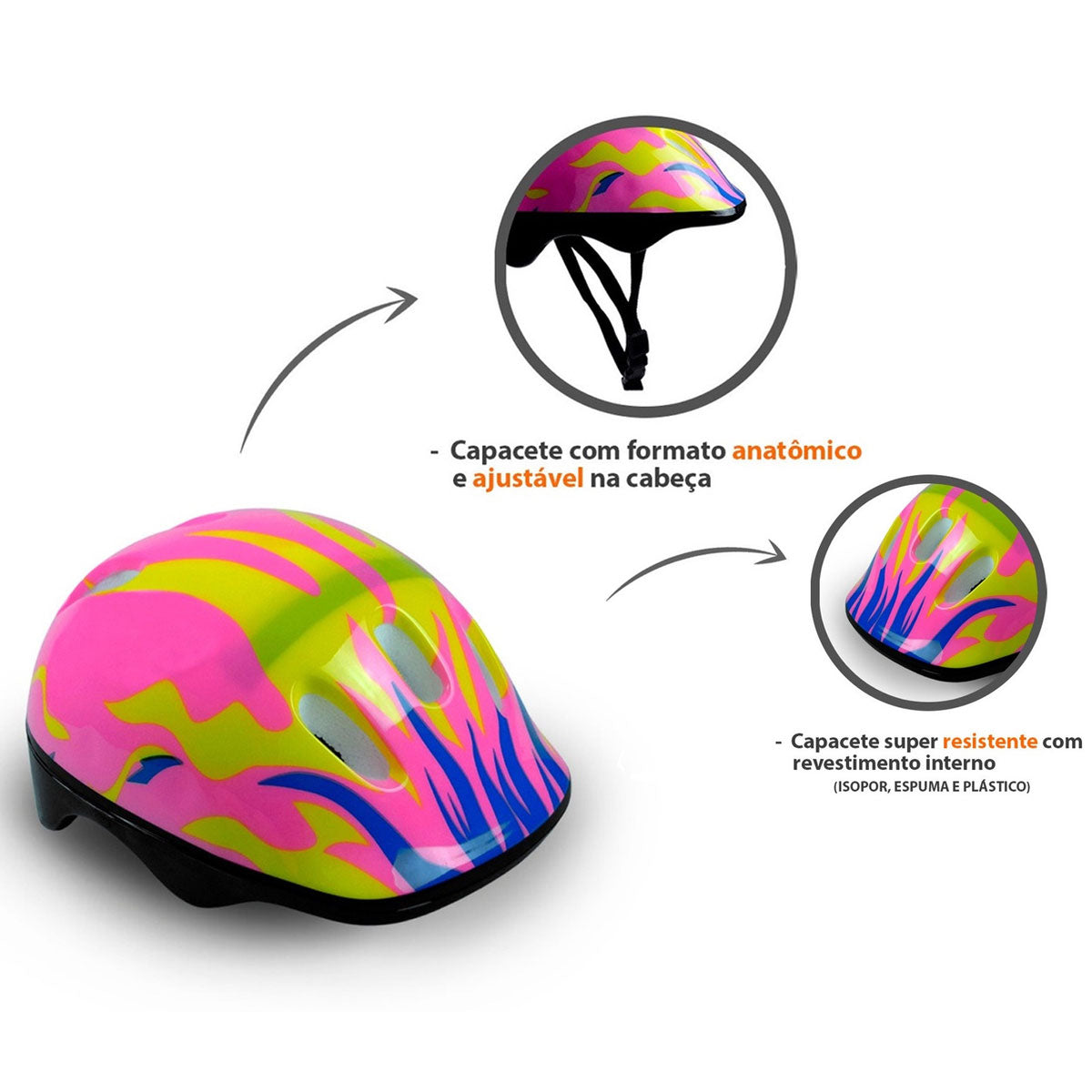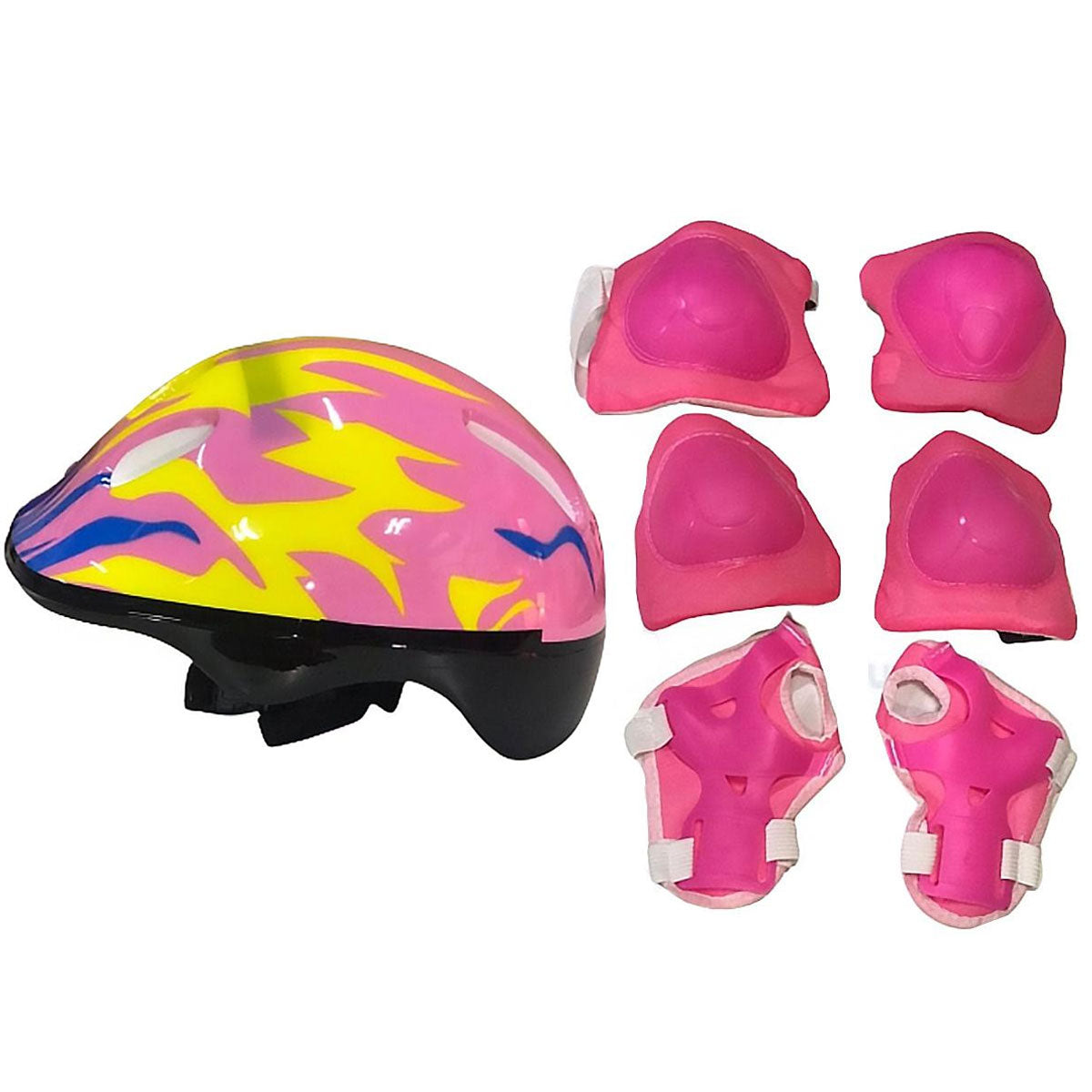 Kit de Proteção Infantil Capacete Cotoveleiras Munhequeiras e Joelheiras Zippy Toys Rosa.