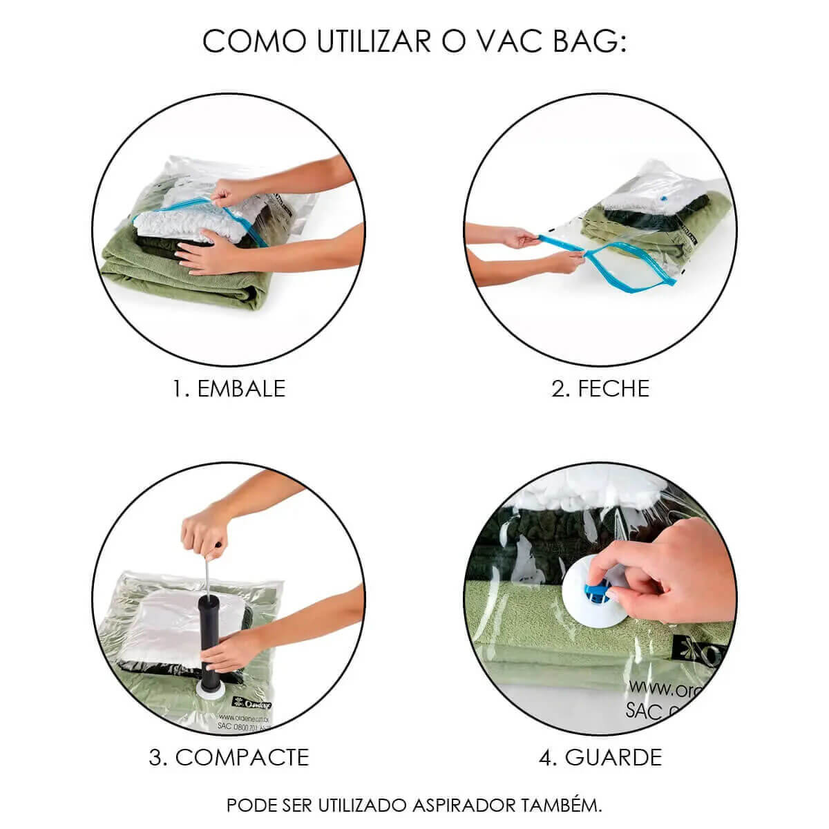 | Local de Uso Indicado | Ideal para armazenar a vácuo roupas, travesseiros, cobertas e edredons, podendo triplicar o espaço no seu roupeiro |