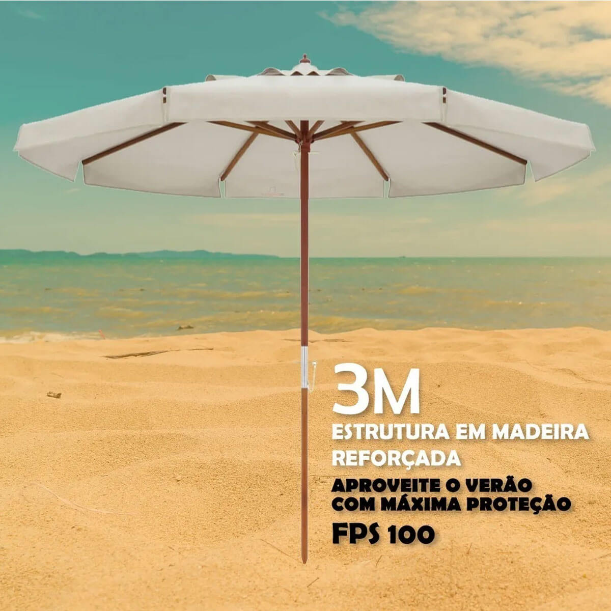 Ombrelone Positano Bagum 3m Bege Haste de Madeira Guarda Sol Piscina Praia Belfix.