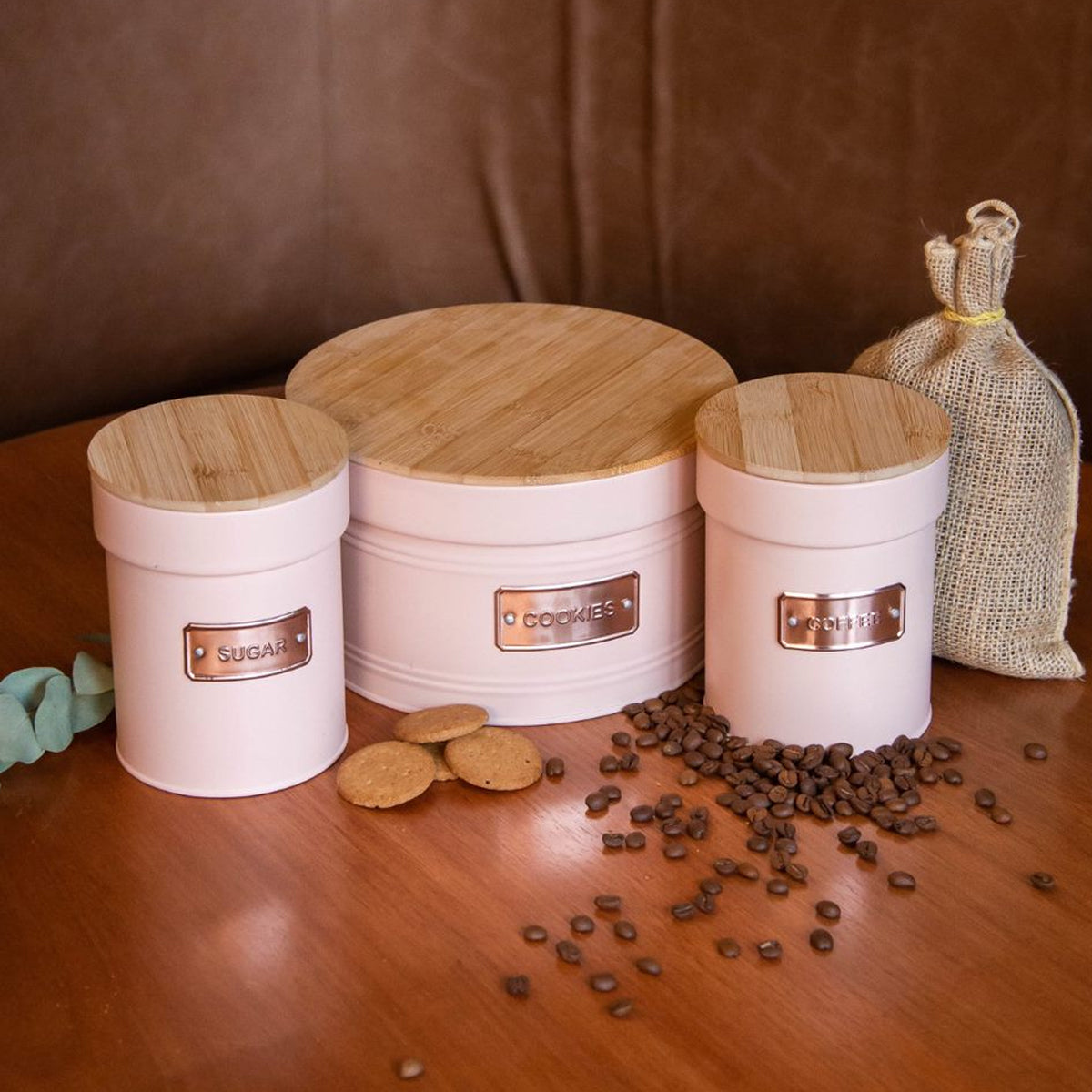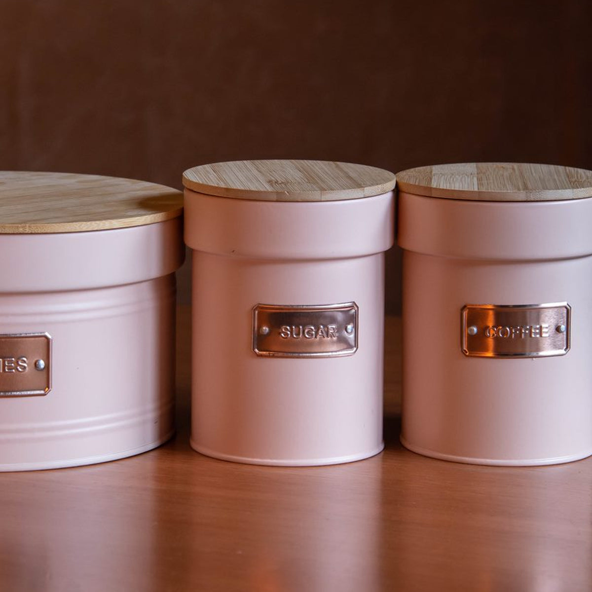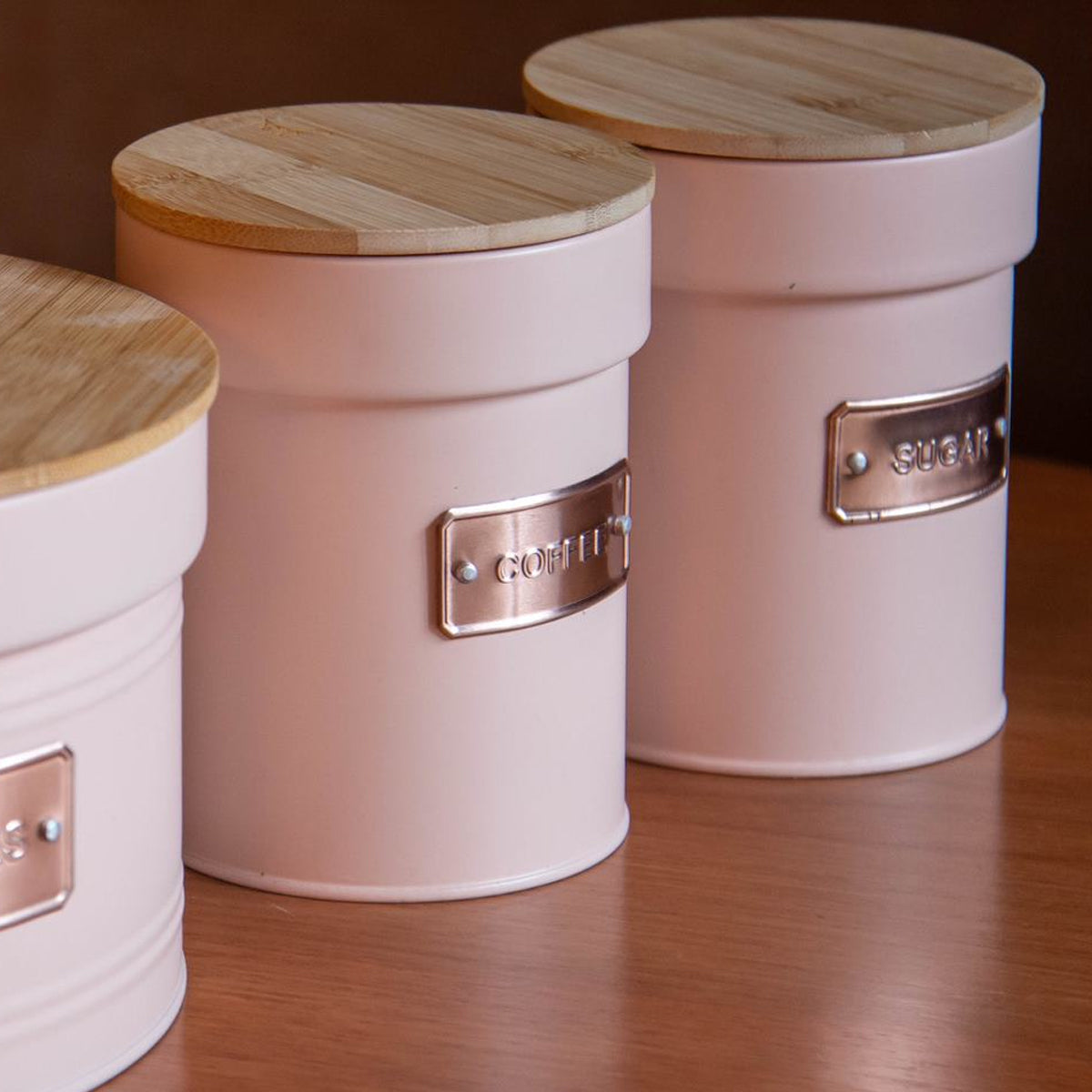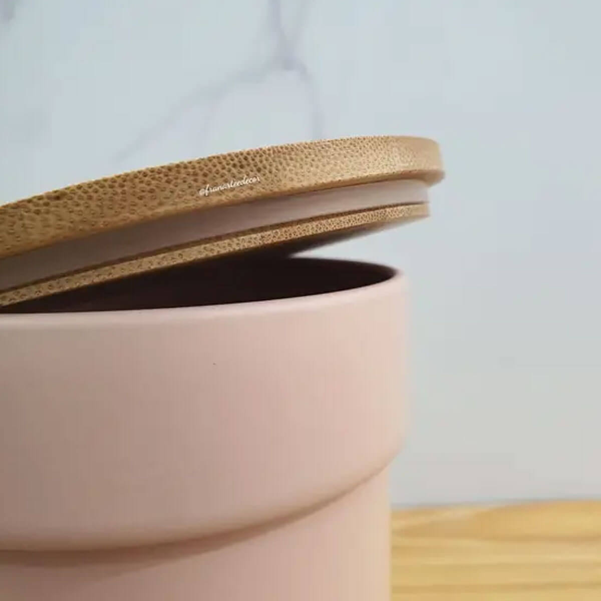 Pote para Acúcar Metal com Tampa Bambu 1L Lata Porta Condimentos Sugar Yoi Rosa