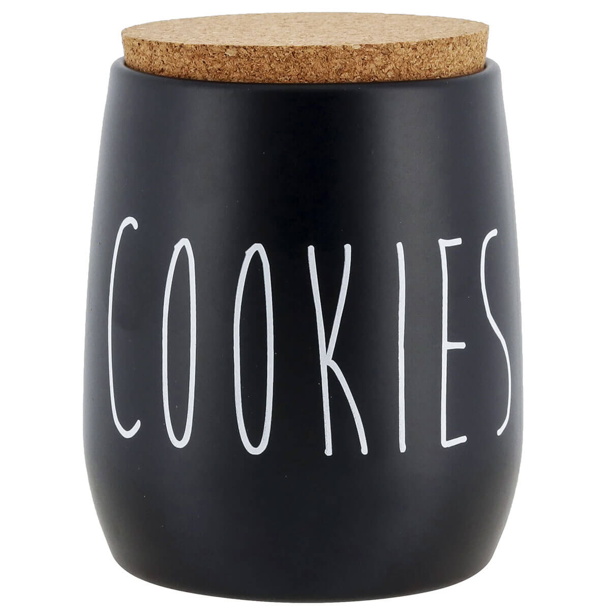 Pote Porta Condimentos Cookies Lata para Biscoitos em Metal e Tampa de Cortiça 850ml OAK Yoi Preto.