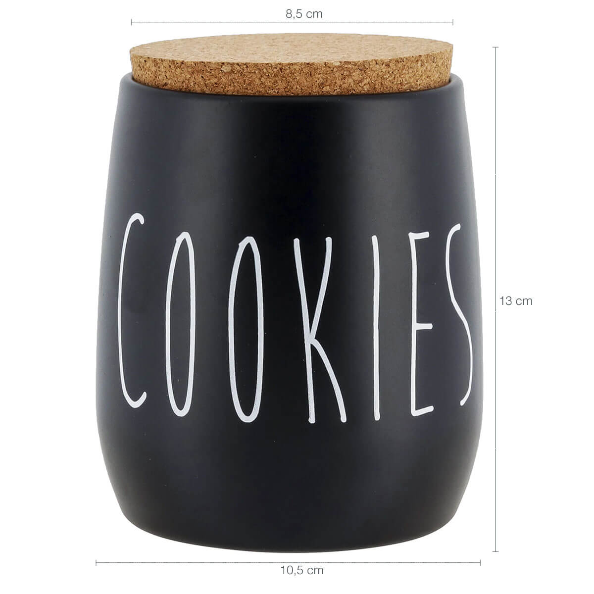 A linha OAK da Yoi veio trazer estilo para dentro da sua casa, no mais fiel estilo escandinavo essa peça é caracterizada por um design clean marcada por linhas retas e cores neutras. Ter um produto como esse é garantir que os seus alimentos serão armazenados de maneira correta, mantendo a qualidade e sabor de forma higiênica e fácil. Esta lata porta condimentos é confeccionada em metal com tampa de cortiça (tipo rolha) e vedação de encaixe, disponível na cor preta com a escrita "Cookies" na cor branca indicando o conteúdo armazenado em seu interior.