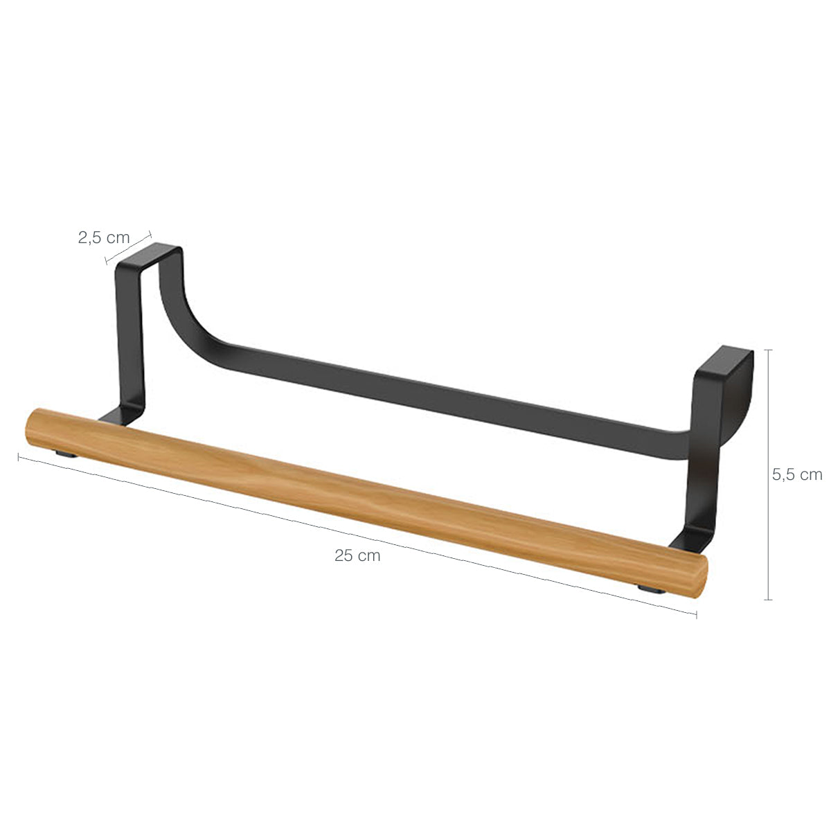 Suporte Toalheiro Porta De Armário Cozinha De Aço Carbono Preto E Madeira Porta Toalha Yoi.