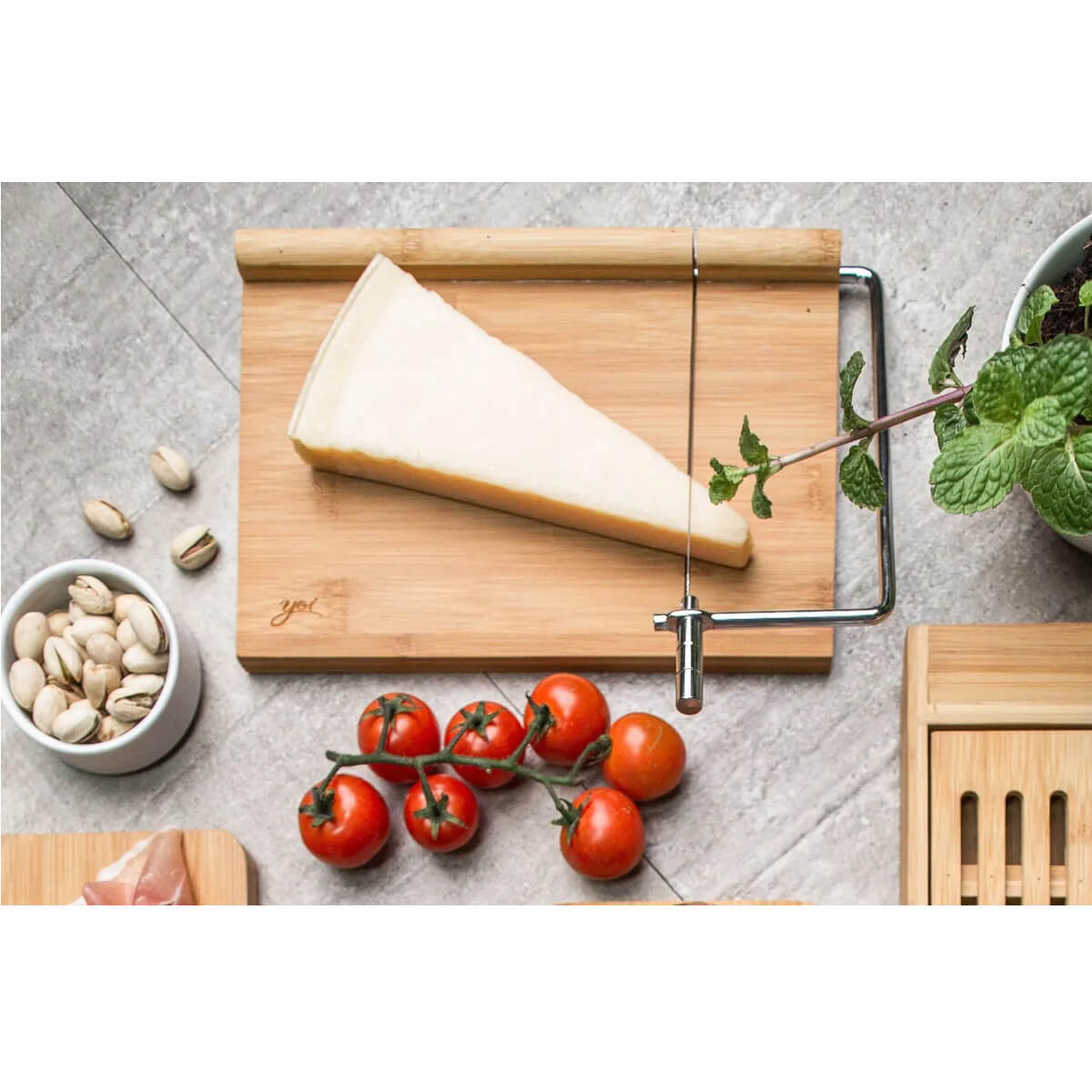 Tábua Bambu Para Queijo Com Guilhotina Fio De Corte Cozinha